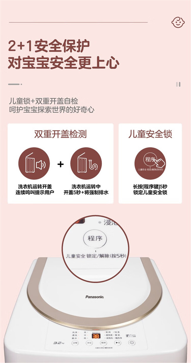 XQB32-P310 3.2kg 波轮儿童内衣洗衣机 全智能洗衣机 松下
