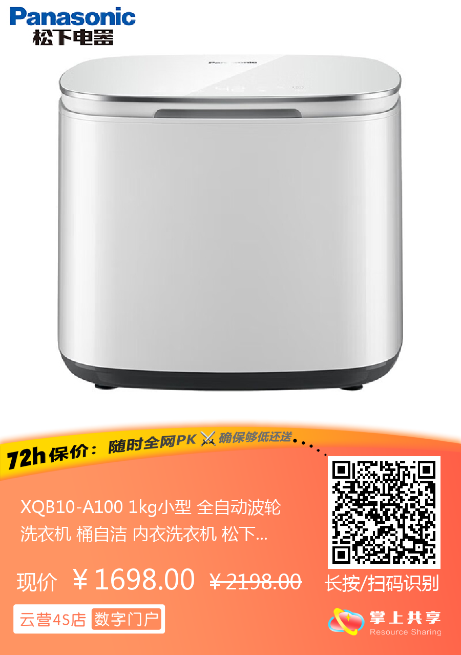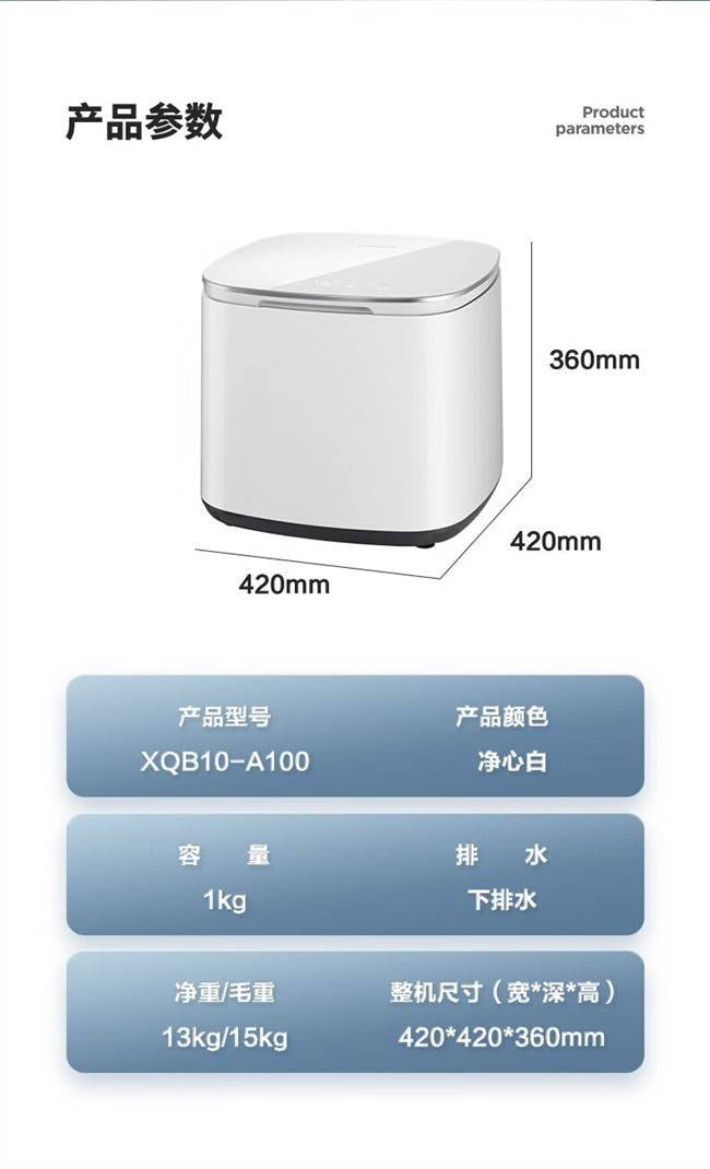 XQB10-A100 1kg小型 全自动波轮洗衣机 桶自洁 内衣洗衣机 松下