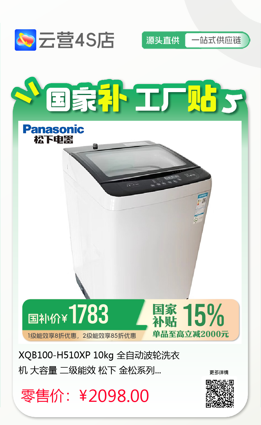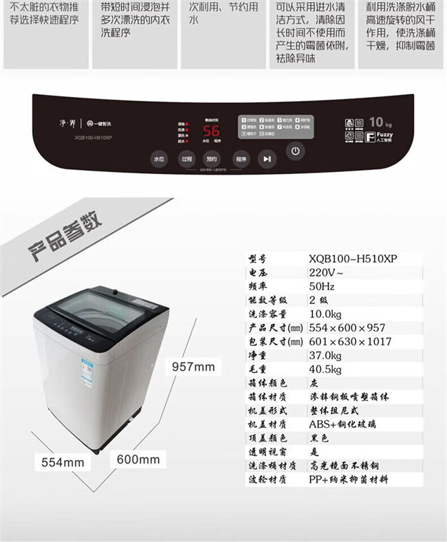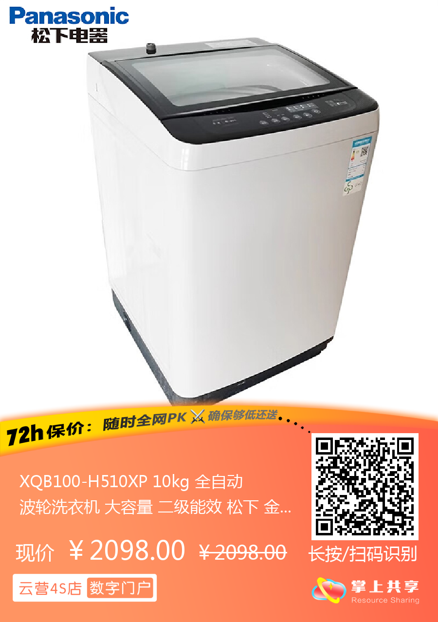 XQB100-H510XP 10kg 全自动波轮洗衣机 大容量 二级能效 松下 金松系列