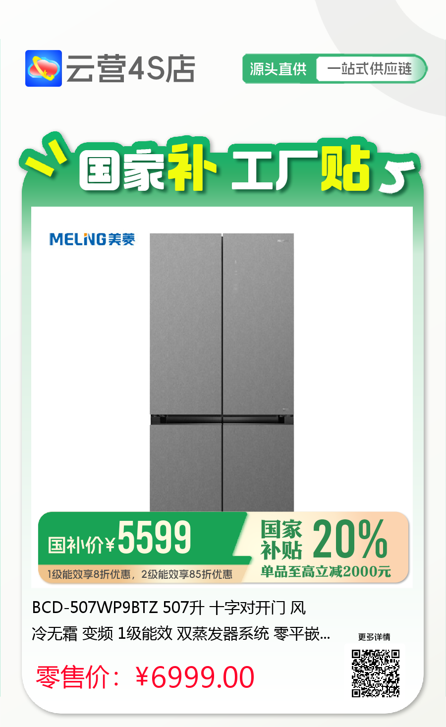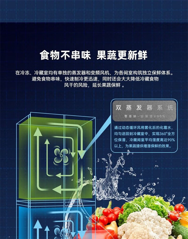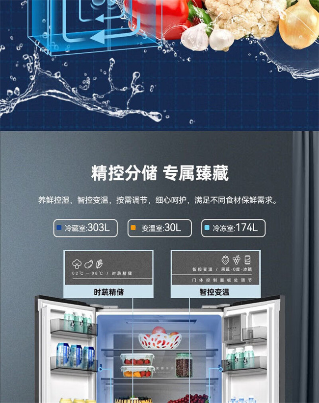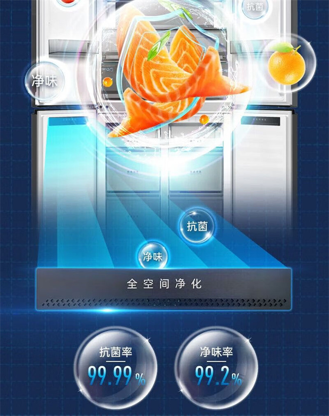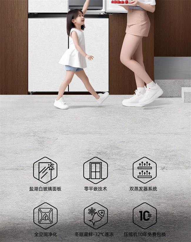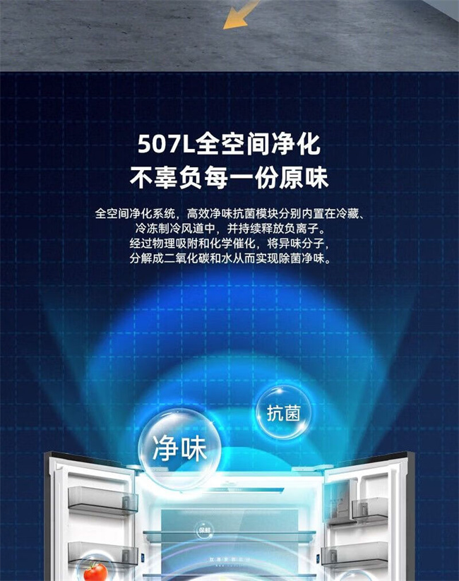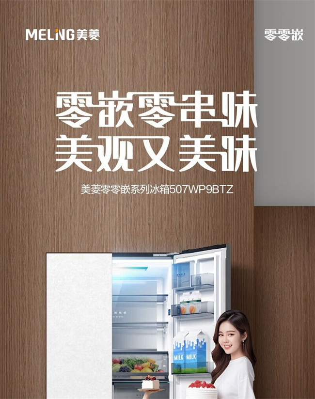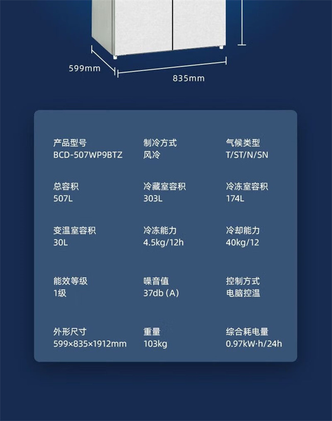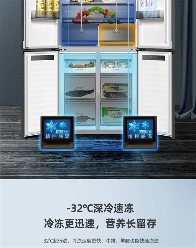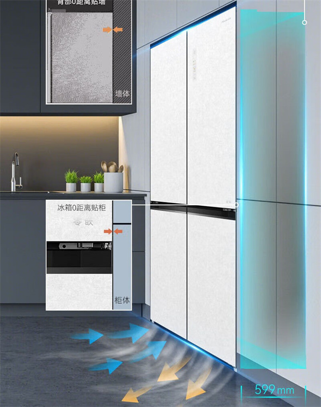 BCD-507WP9BTZ 507升 十字对开门 风冷无霜 变频 1级能效 双蒸发器系统 零平嵌 美菱(MeiLing)