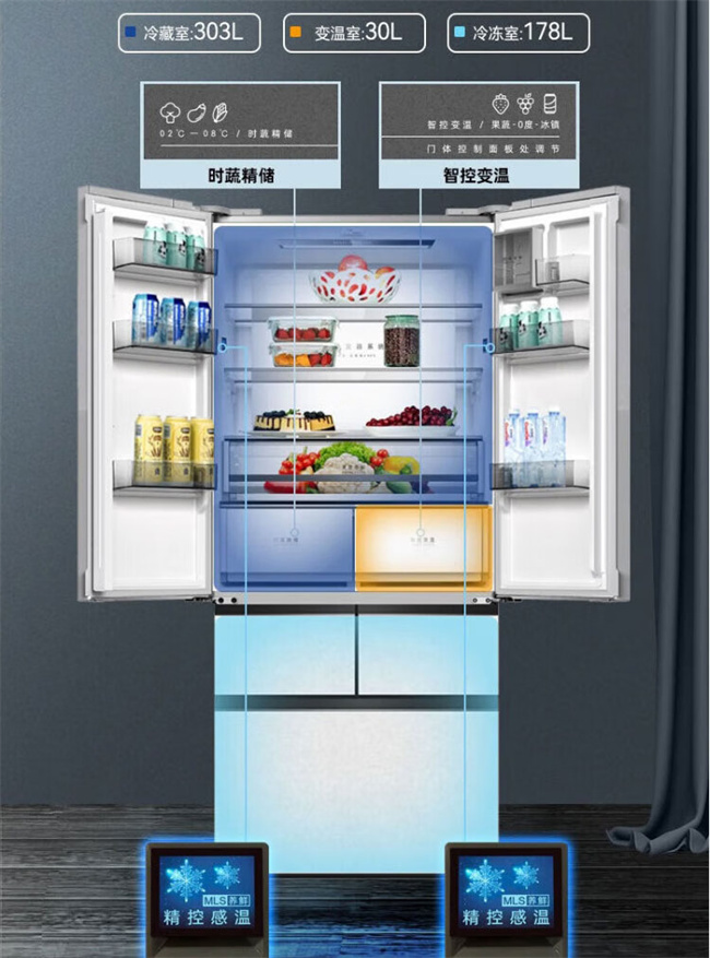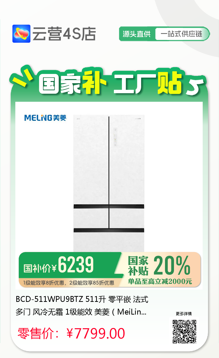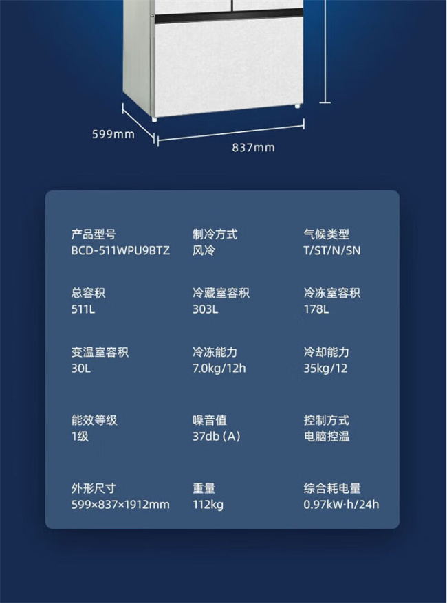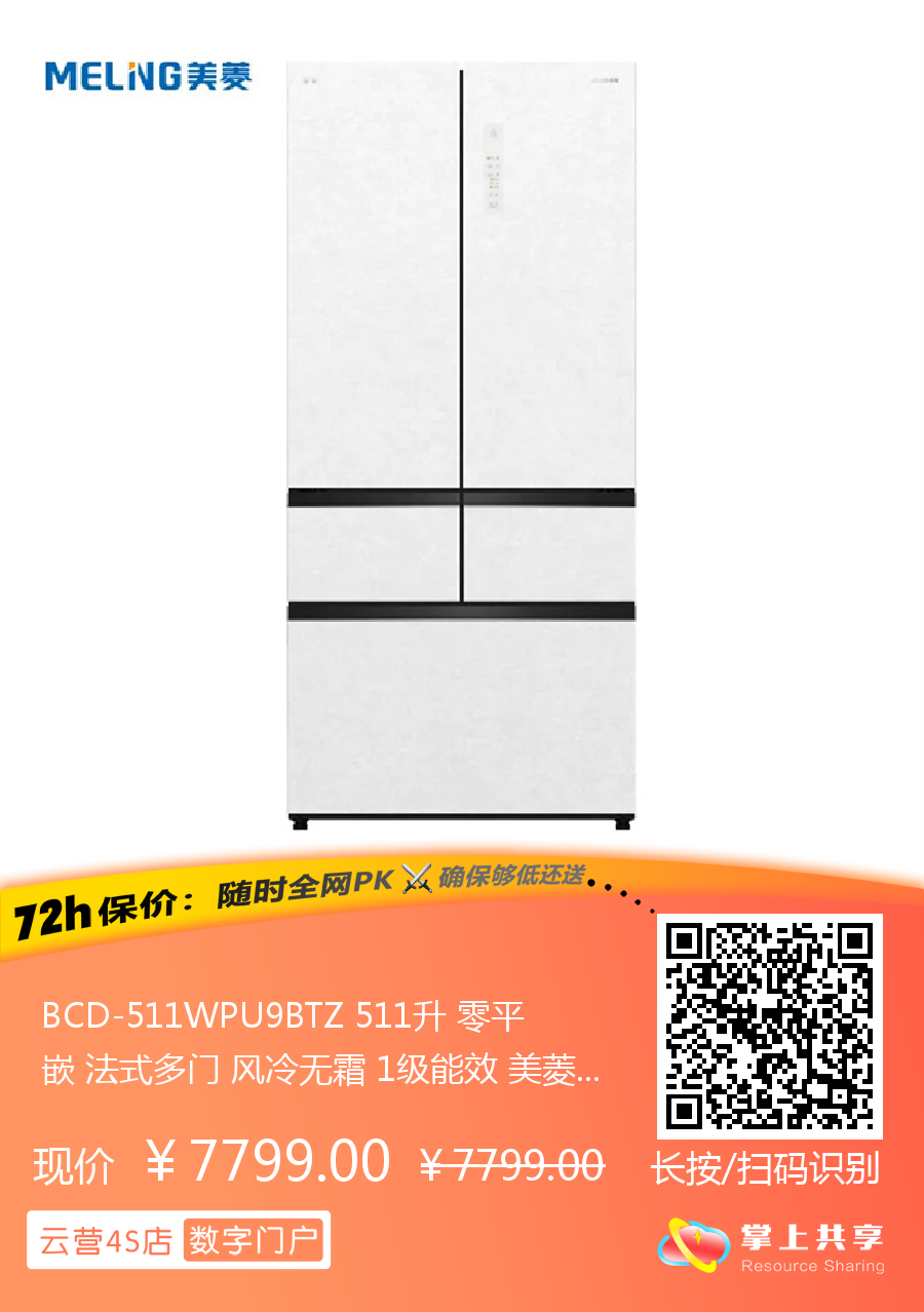 BCD-511WPU9BTZ 511升 零平嵌 法式多门 风冷无霜 1级能效 美菱(MeiLing)