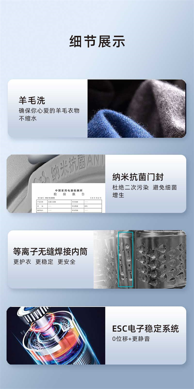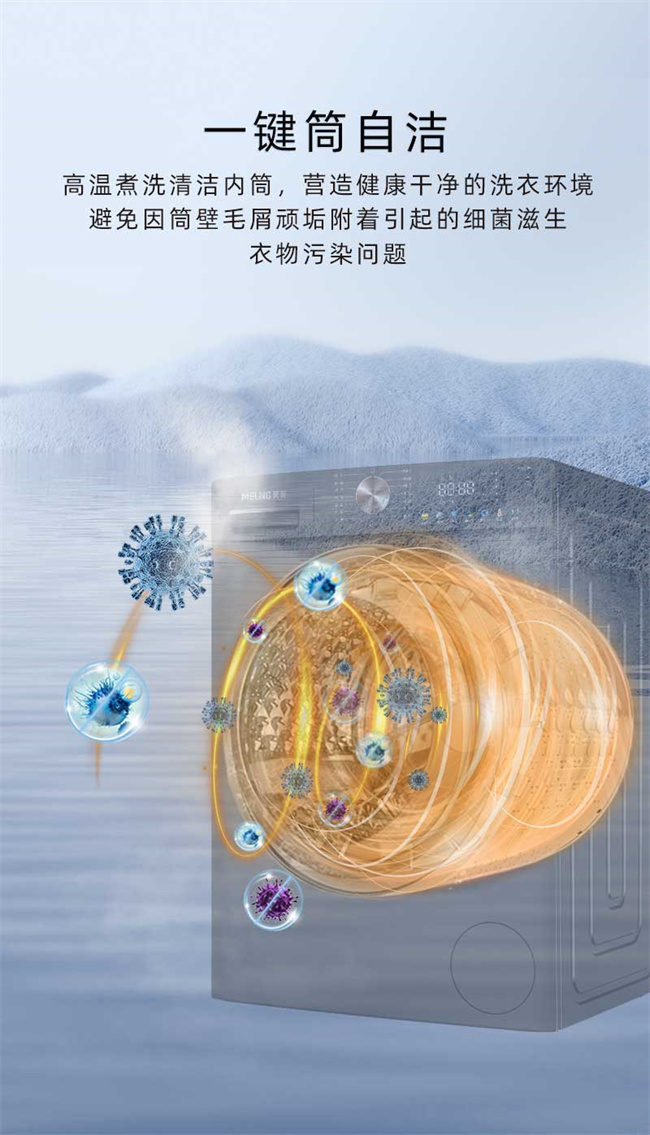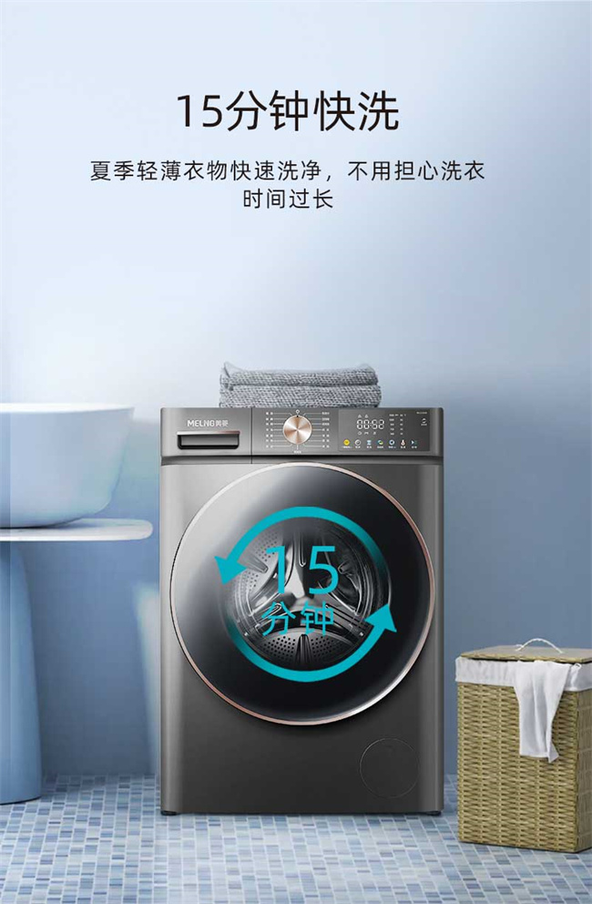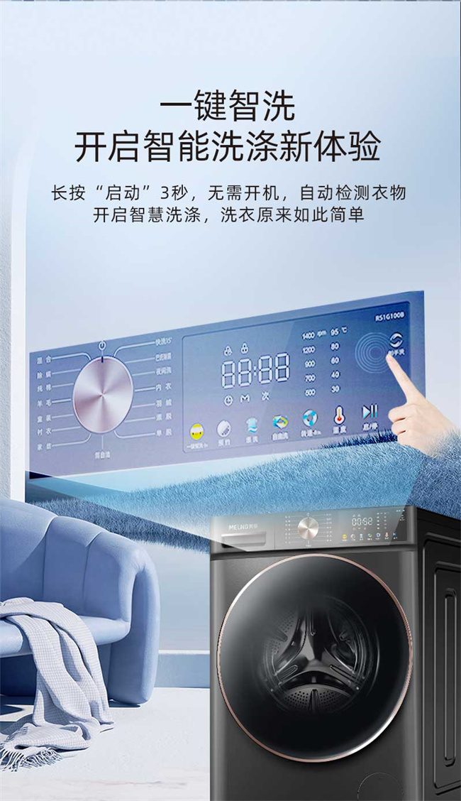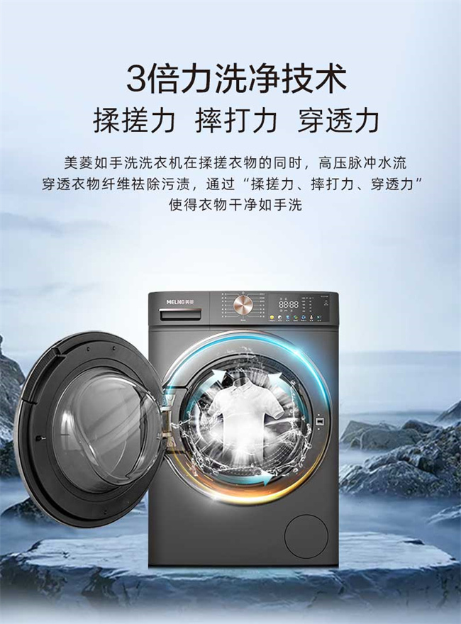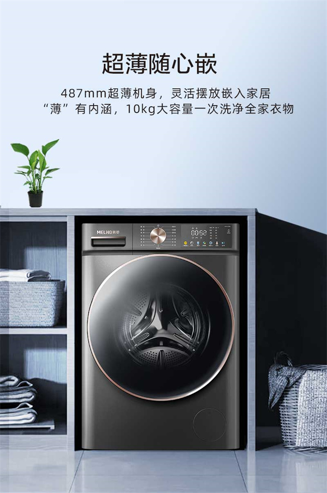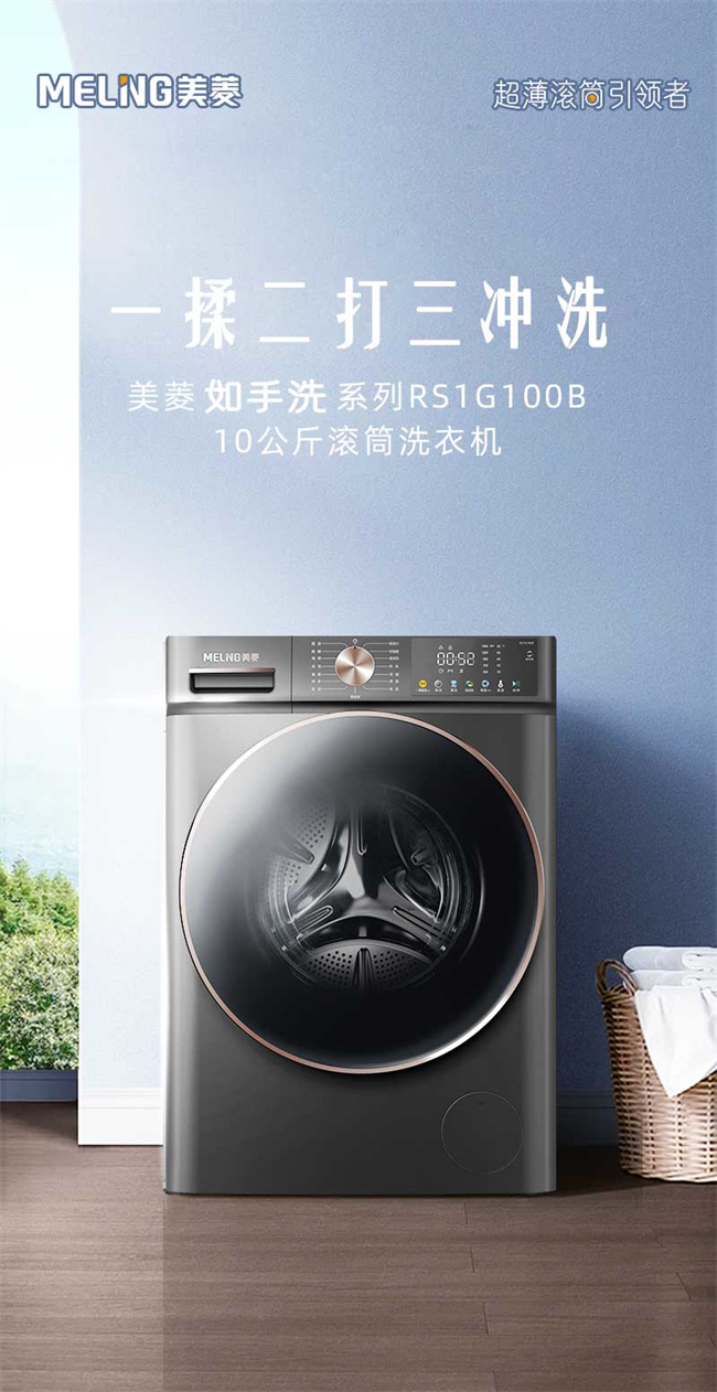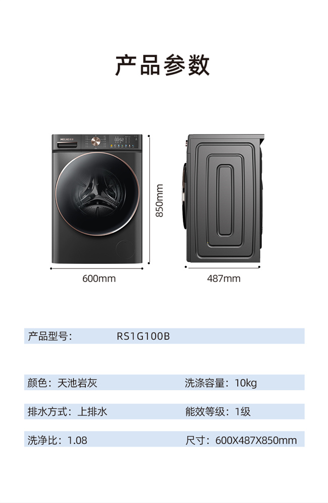 RS1G100B 天池岩灰 10kg 1级能效 BLDC电机 超薄嵌入 巴氏除菌 滚筒洗衣机 美菱(MeiLing) 如手洗系列