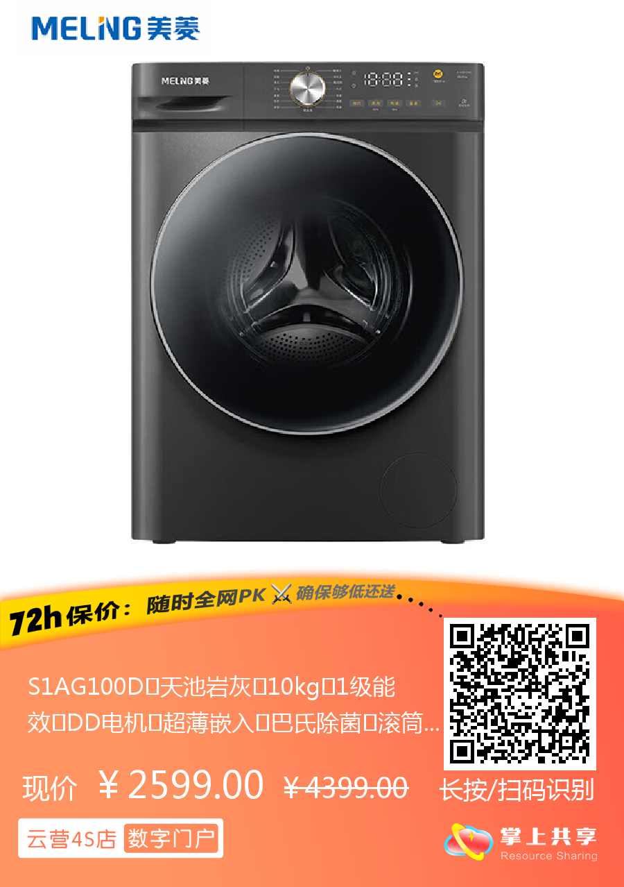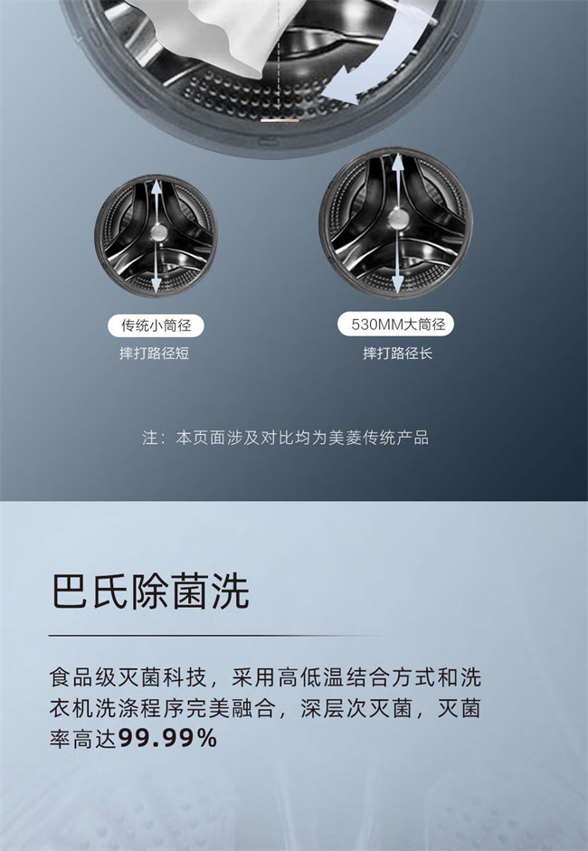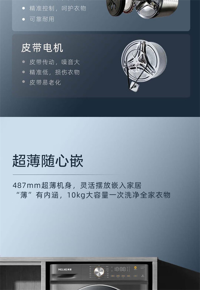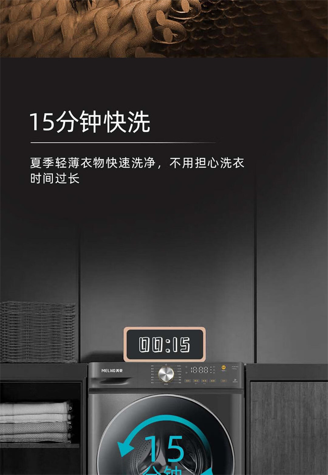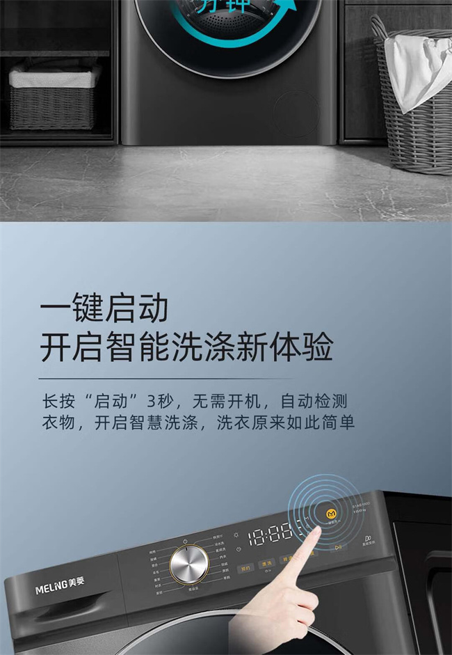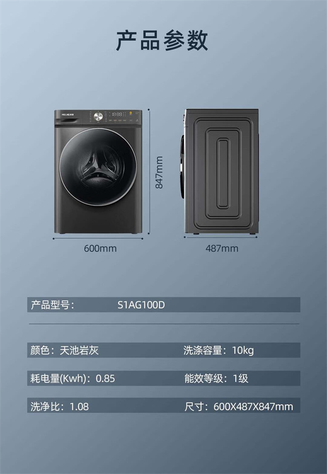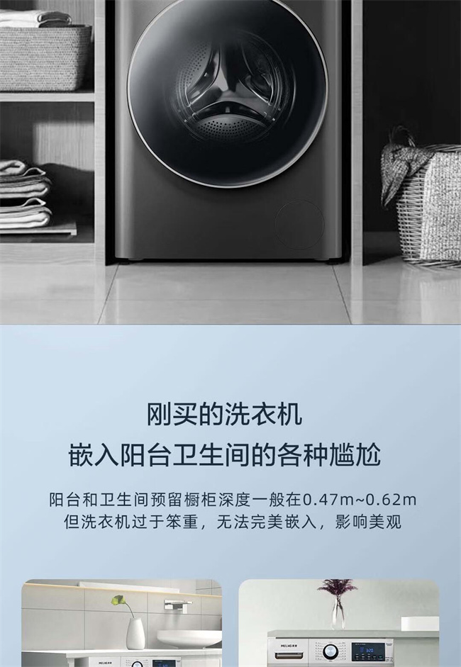 S1AG100D 天池岩灰 10kg 1级能效 DD电机 超薄嵌入 巴氏除菌 滚筒洗衣机 美菱(MeiLing)