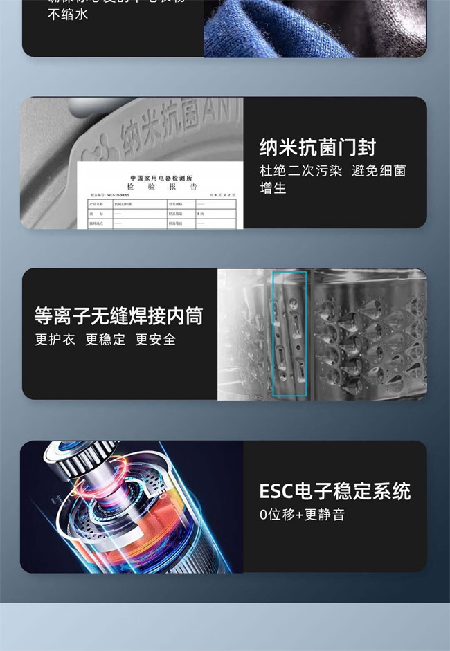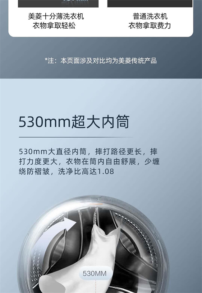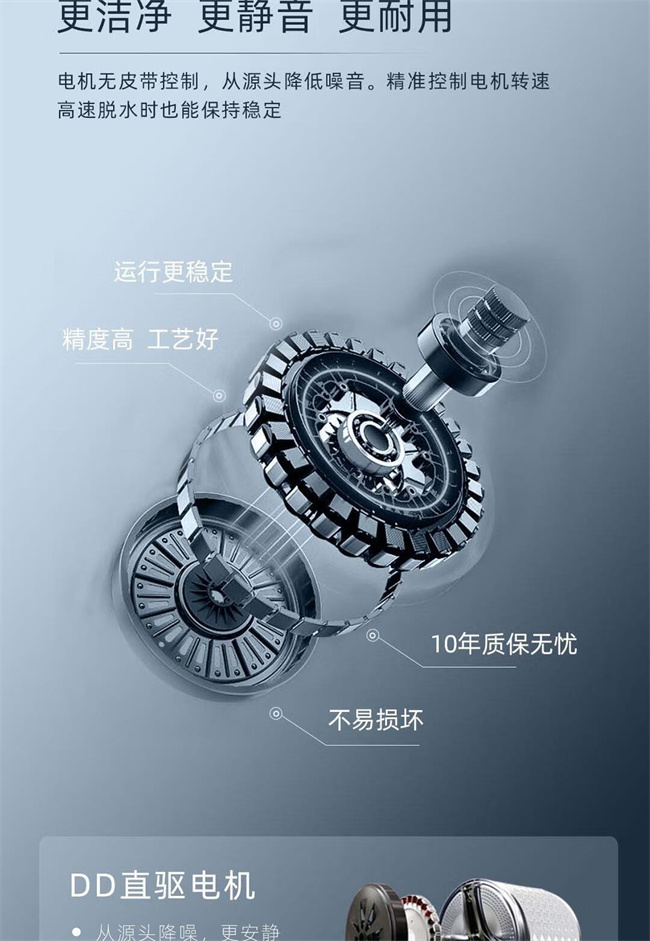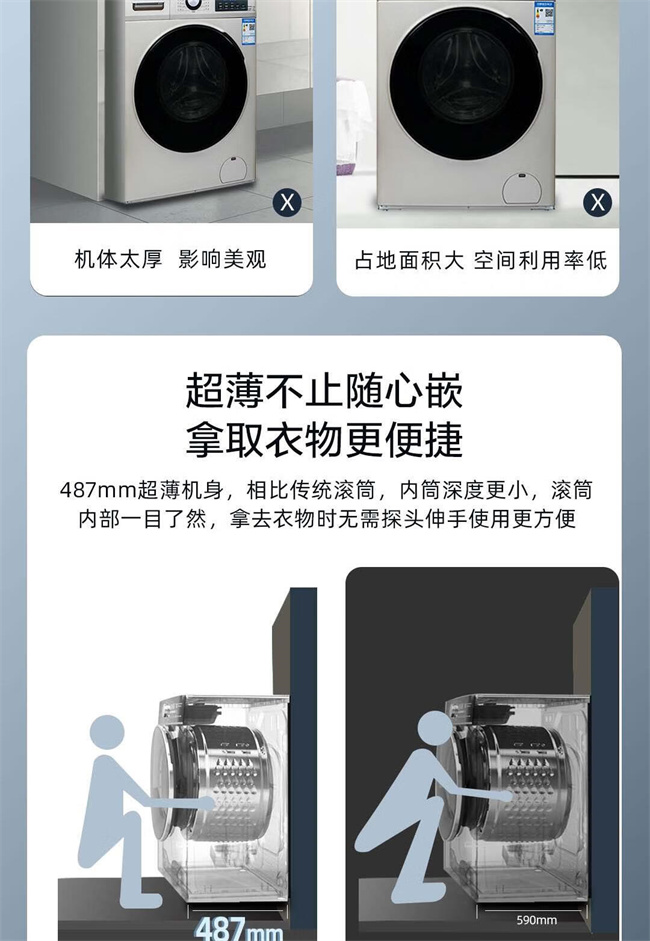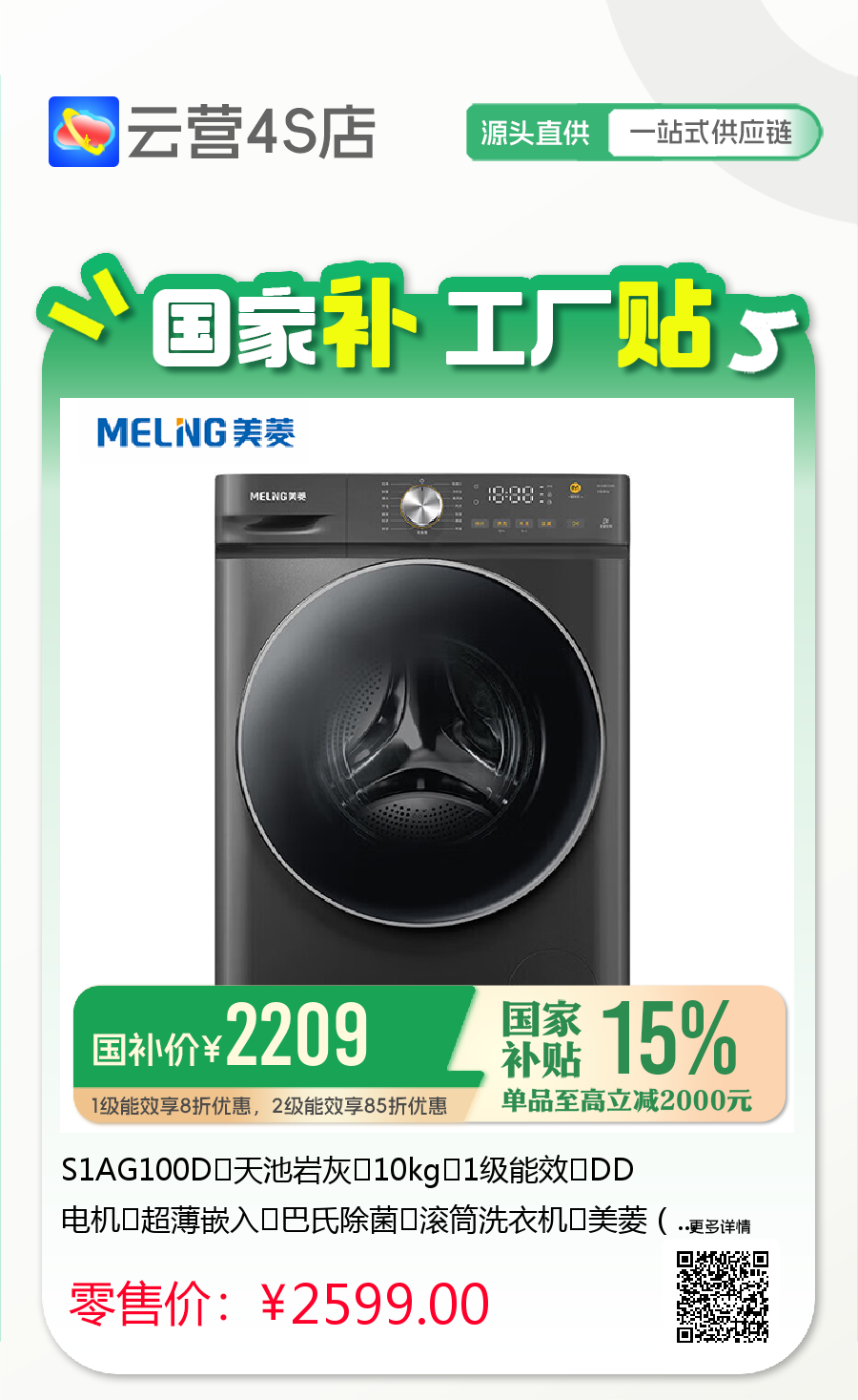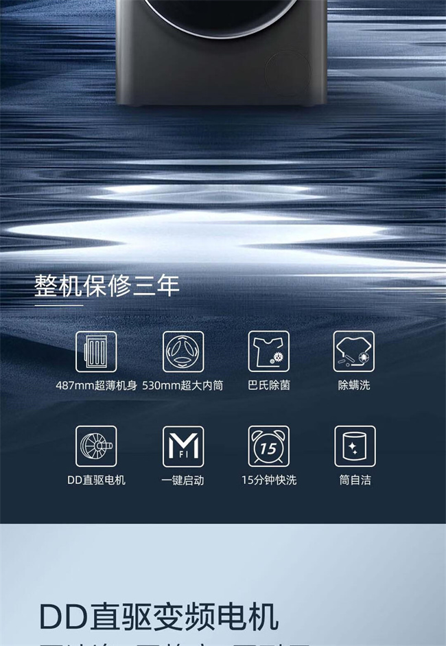 S1AG100D 天池岩灰 10kg 1级能效 DD电机 超薄嵌入 巴氏除菌 滚筒洗衣机 美菱(MeiLing)