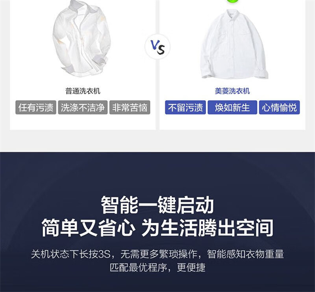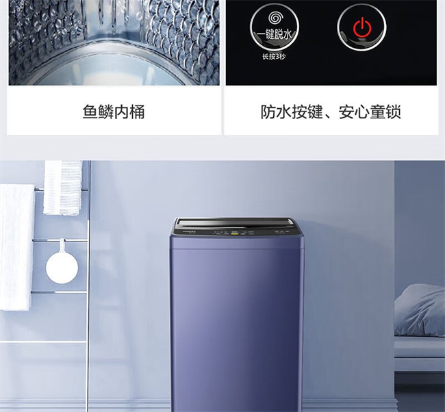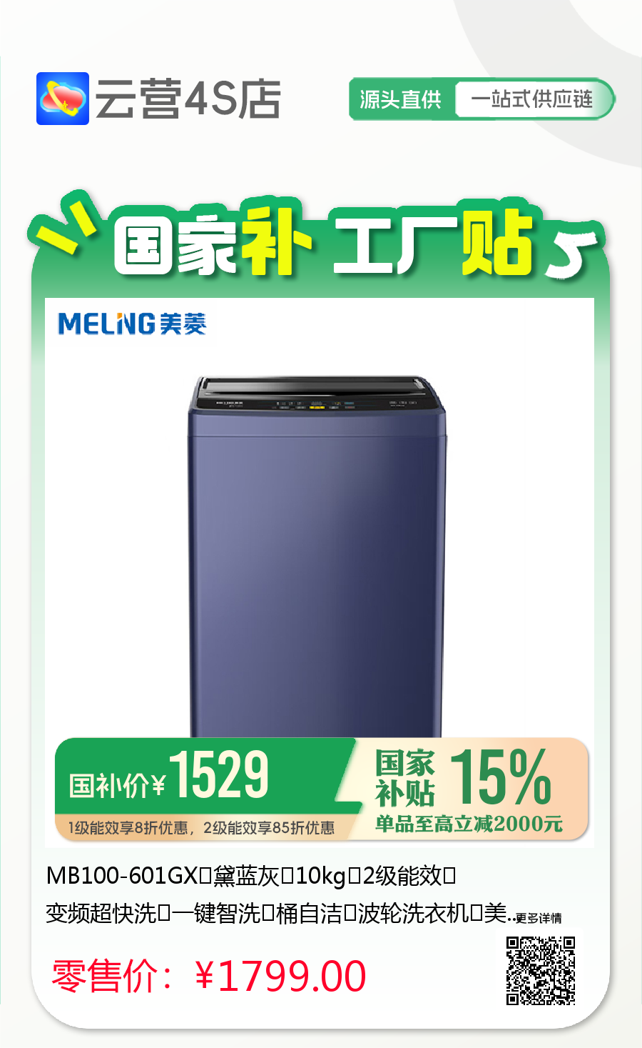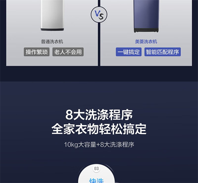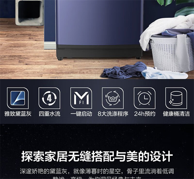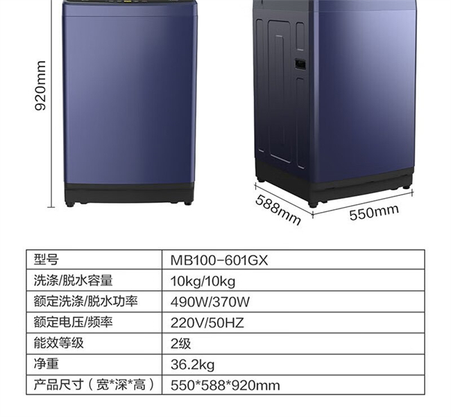 MB100-601GX 黛蓝灰 10kg 2级能效 变频超快洗 一键智洗 桶自洁 波轮洗衣机 美菱(MeiLing)