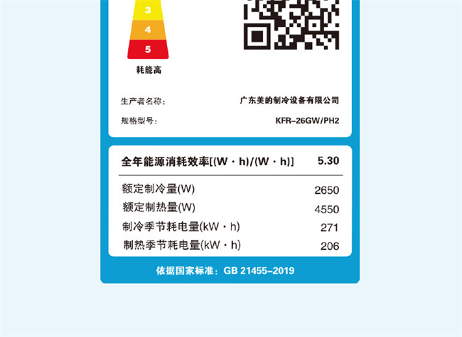 美的 大1匹挂机 冷静星III 新1级能效 冷暖变频空调 KFR-26GW/PH2