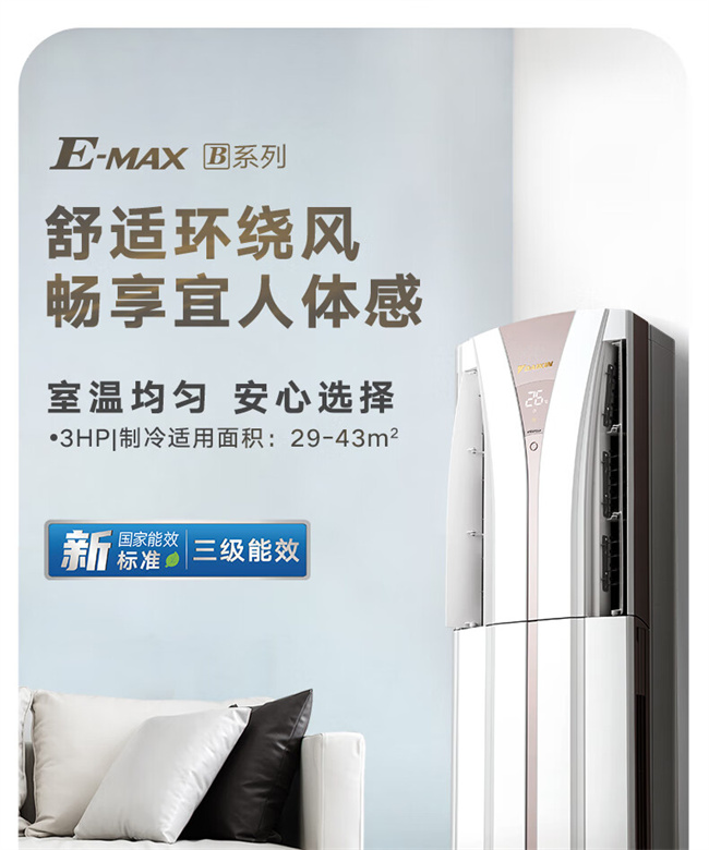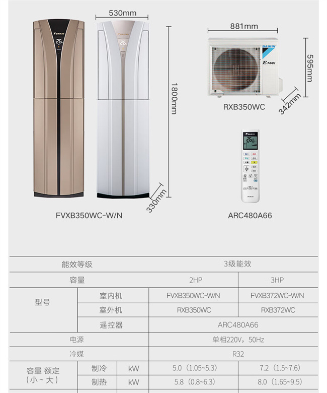 大金 3匹方形柜机 B柜 新3级能效 冷暖变频空调 FVXB372WC-W/N