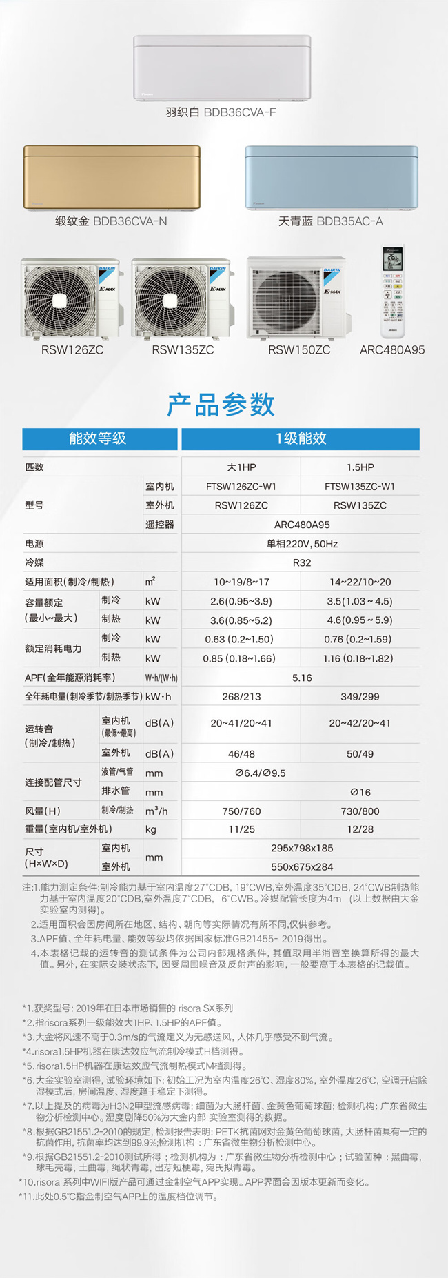 大金 1.5匹挂机 新时尚 新1级能效 冷暖变频空调 FTSW135ZC-W1