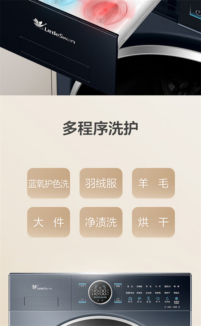 小天鹅全自动滚筒洗衣机 10公斤 洗烘一体 变频除菌 TG100MS93ILZ