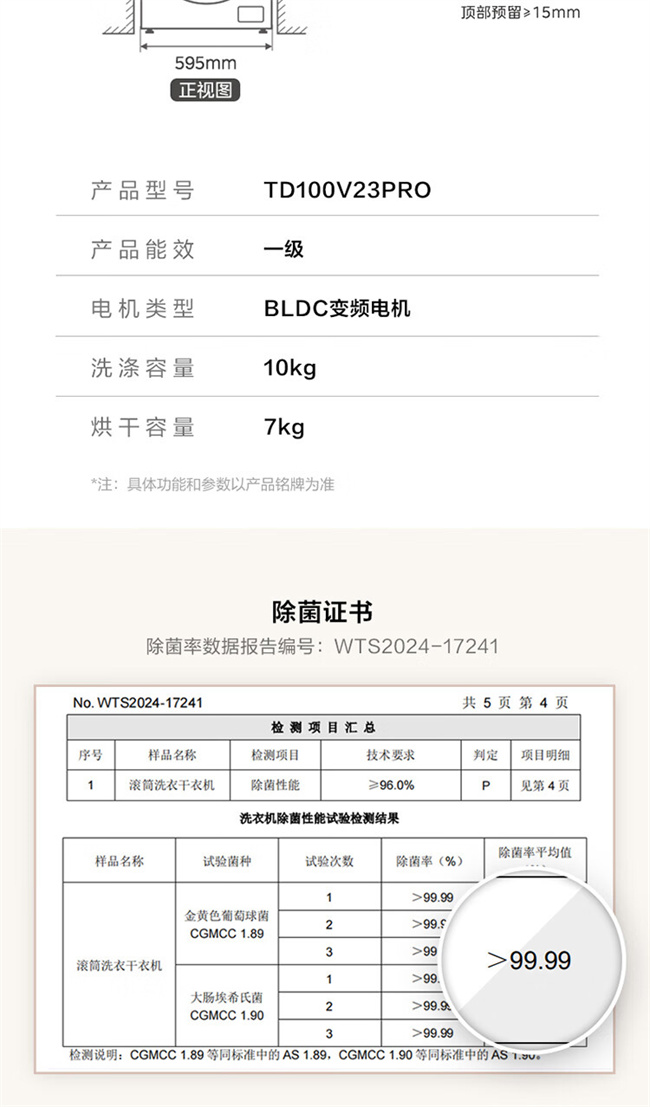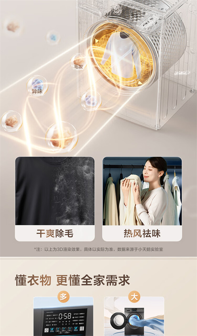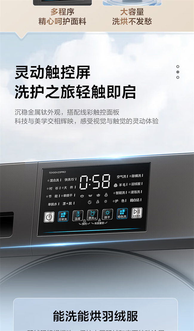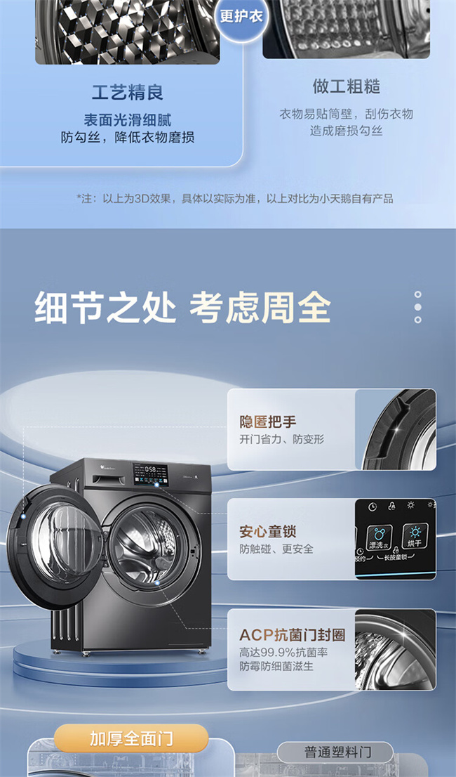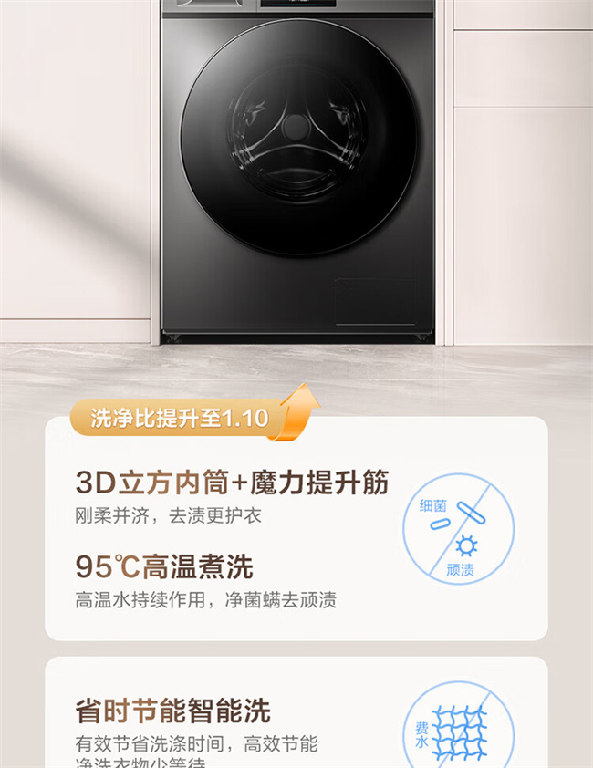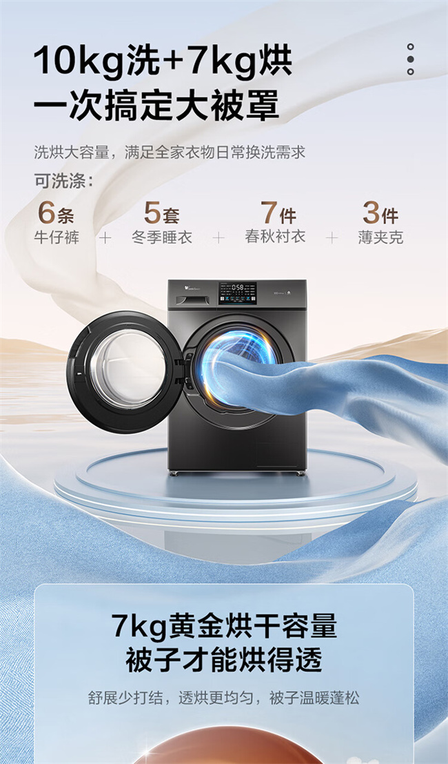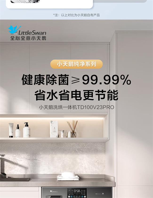小天鹅全自动滚筒洗衣机 10公斤 洗烘一体 变频除菌 1级能效 纯净系列 TD100V23PRO