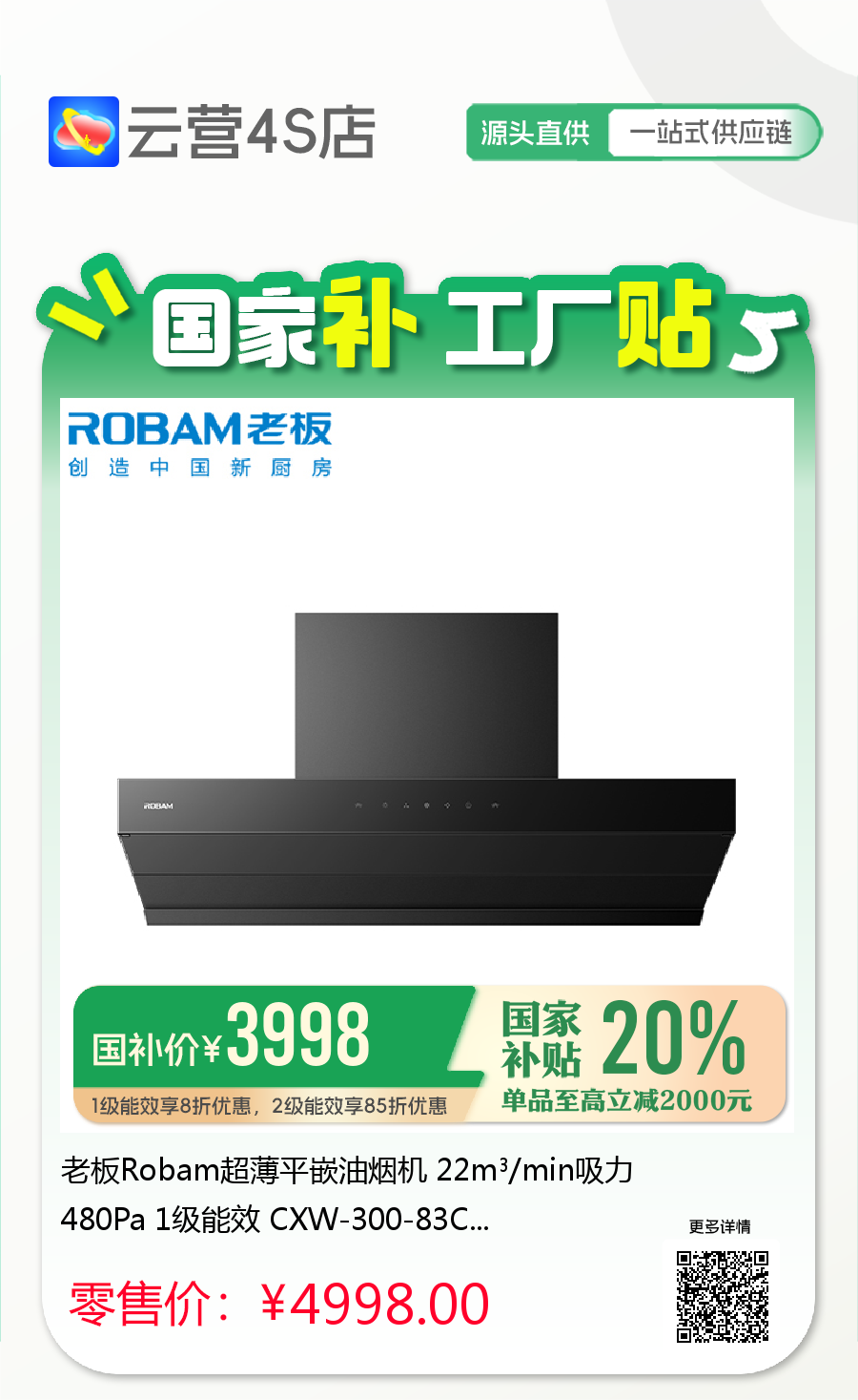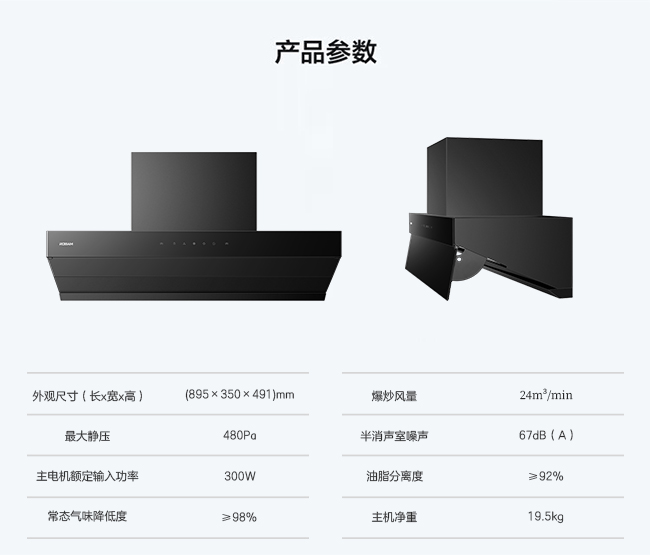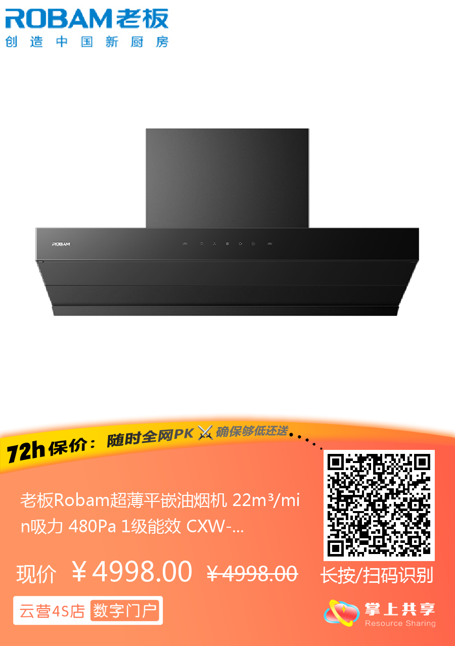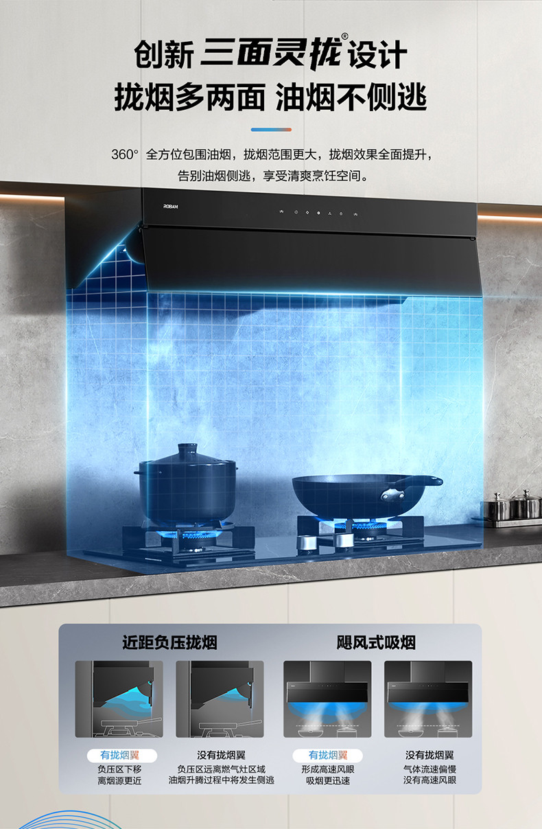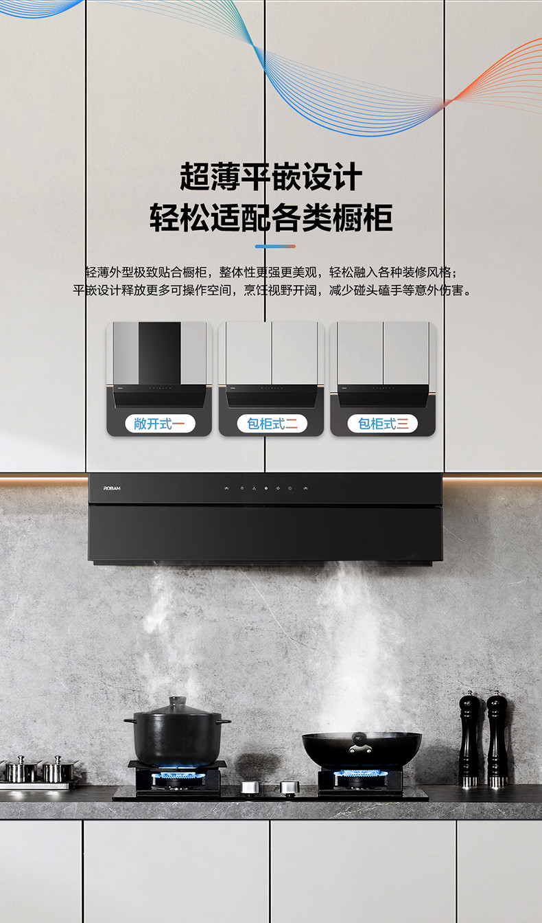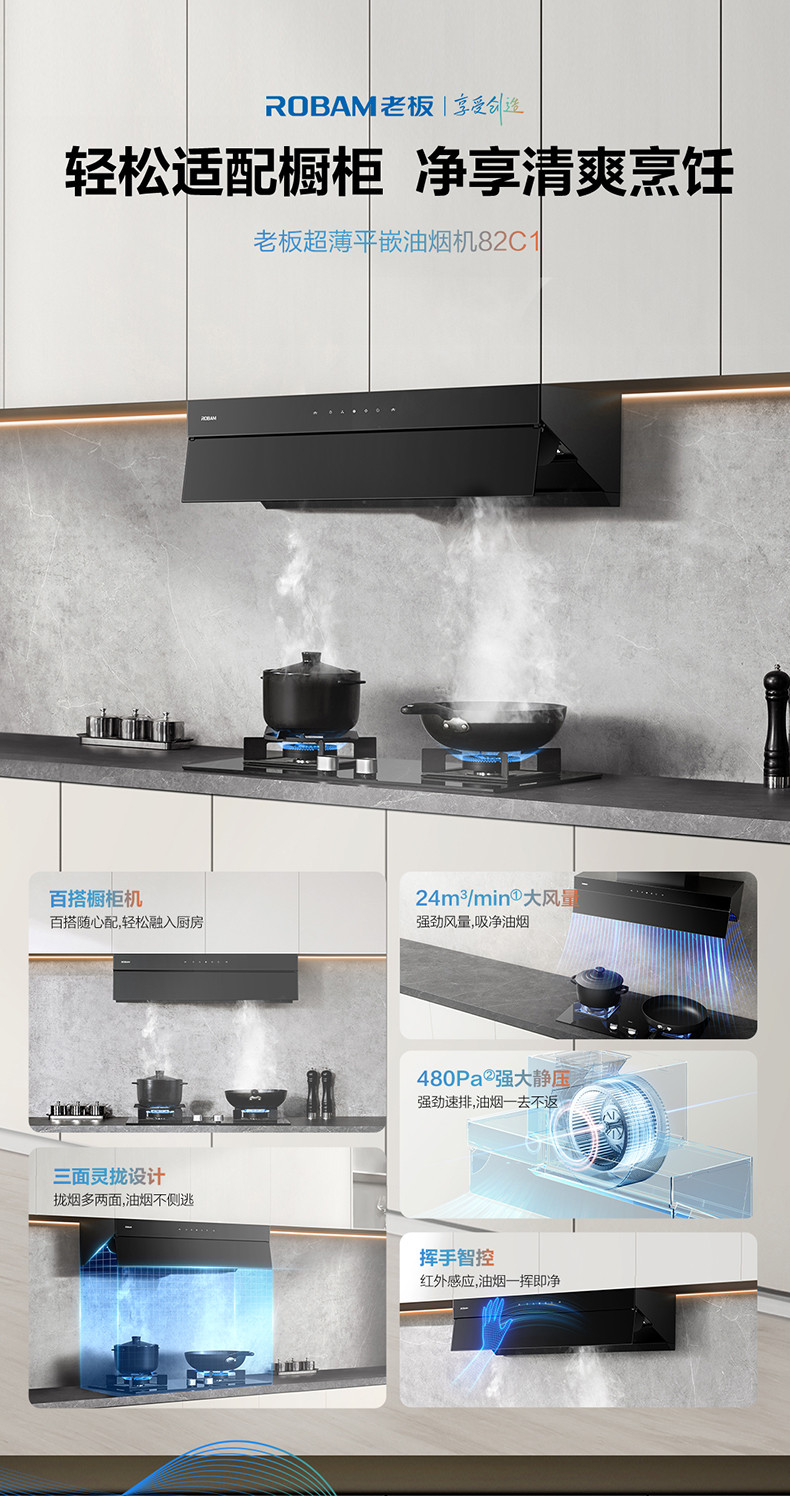 老板Robam超薄平嵌油烟机 22m³/min吸力 480Pa 1级能效 CXW-300-83C1