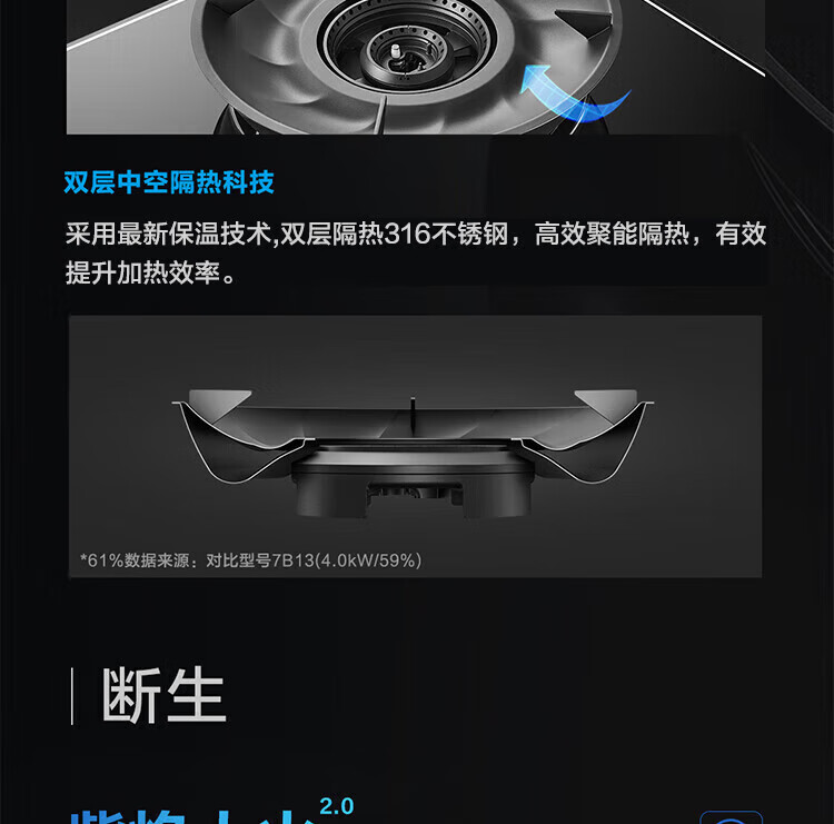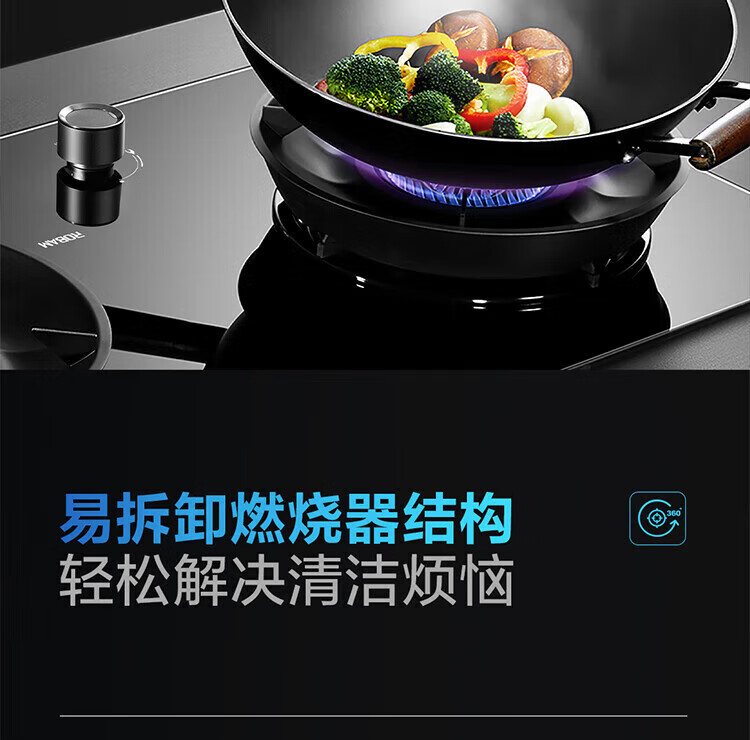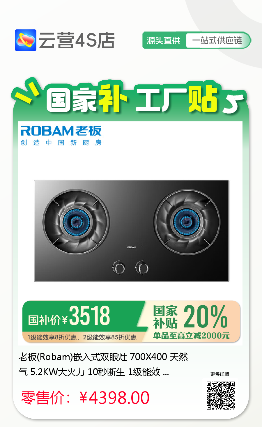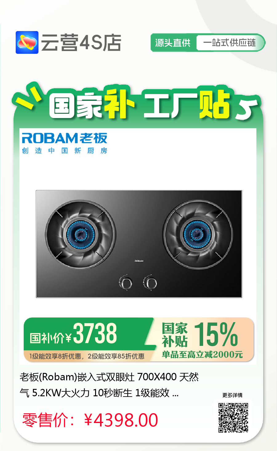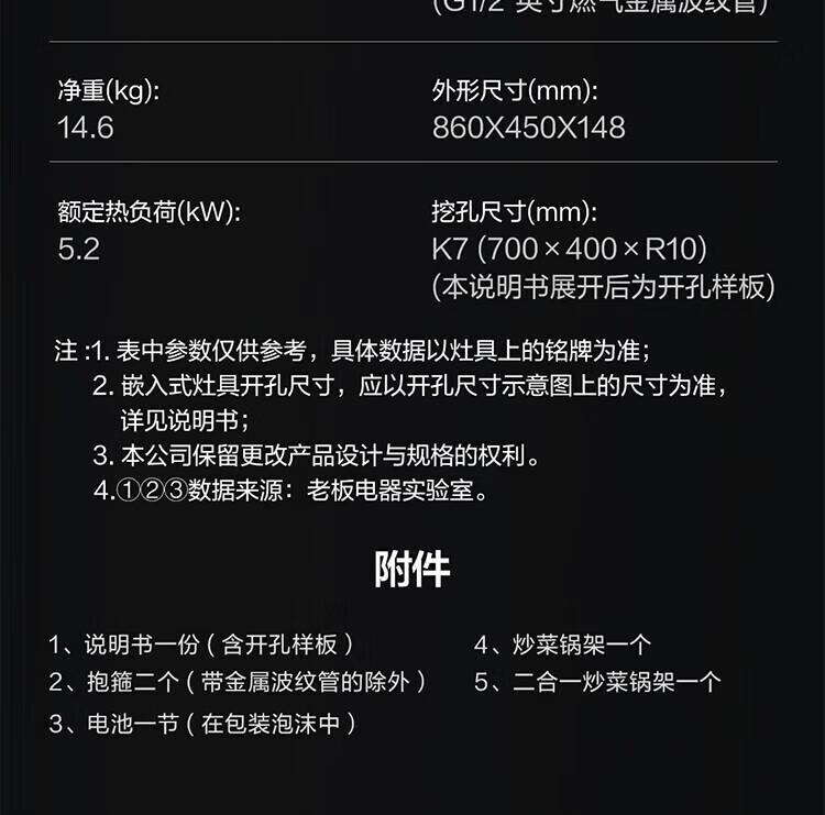 老板(Robam)嵌入式双眼灶 700X400 天然气 5.2KW大火力 10秒断生 1级能效 9B511