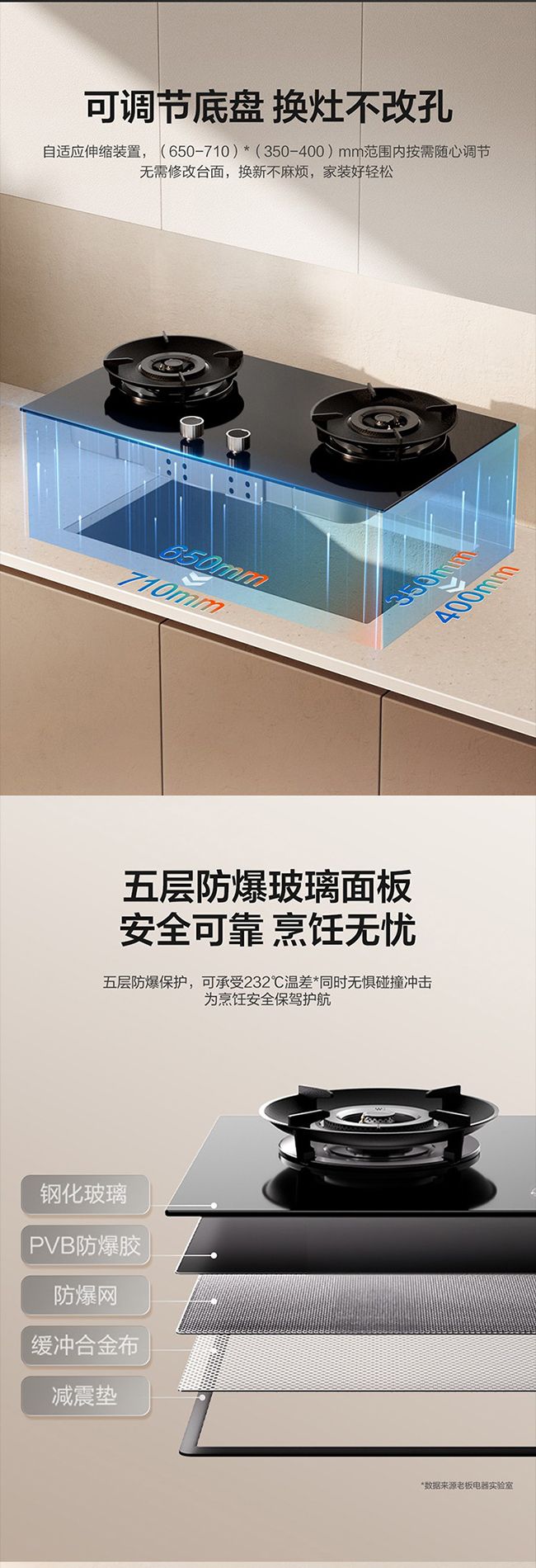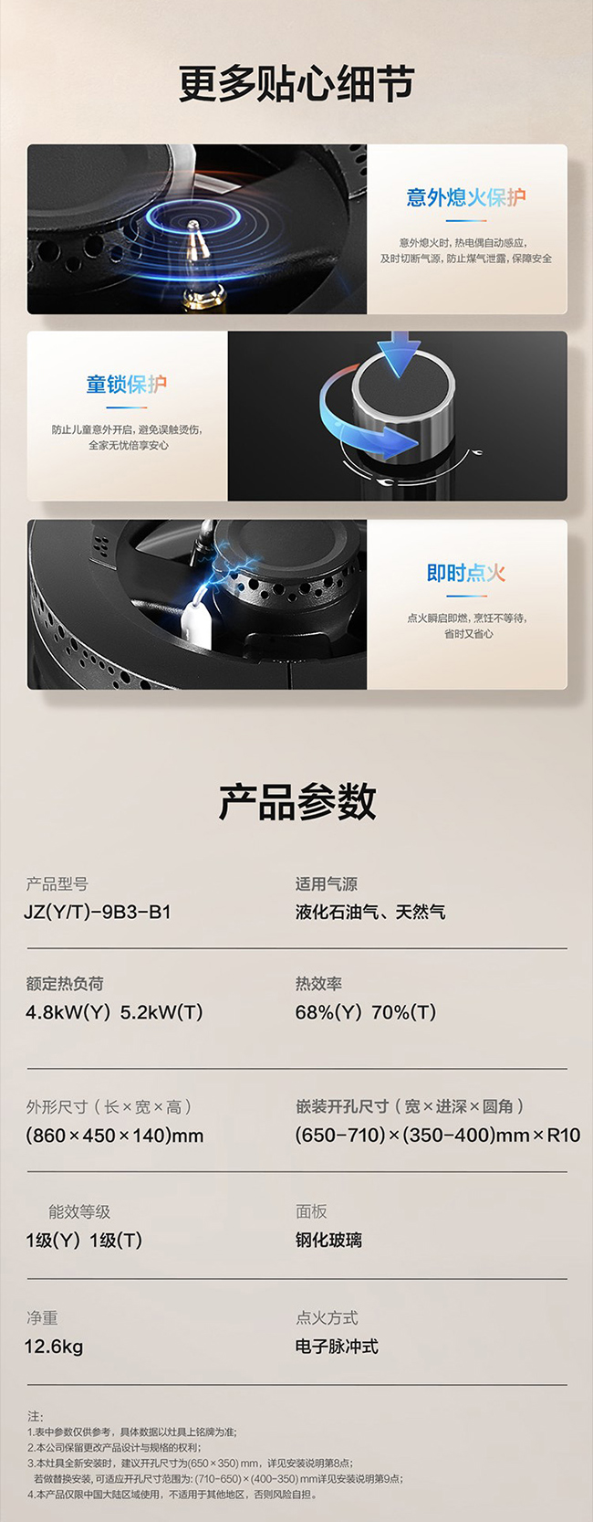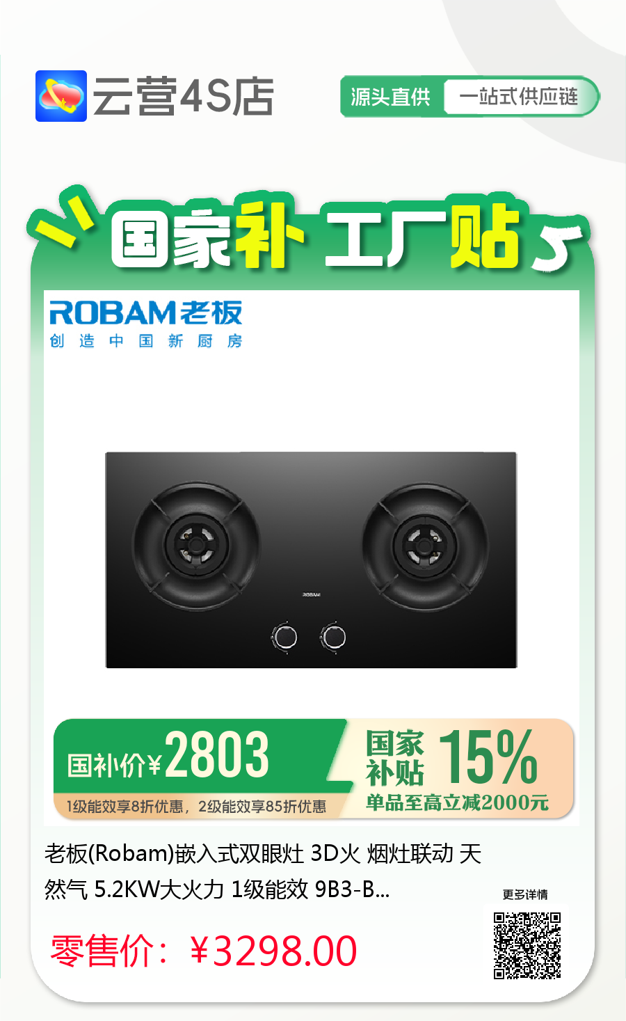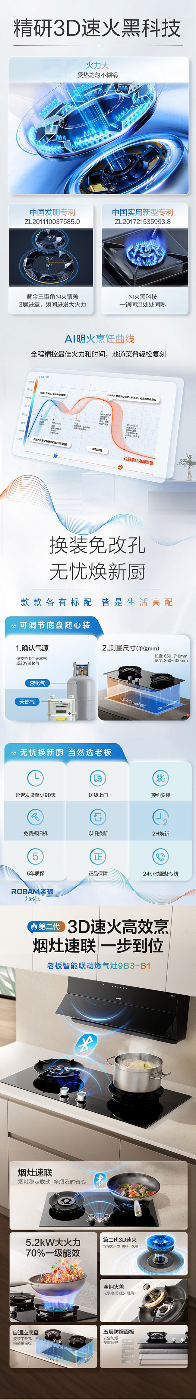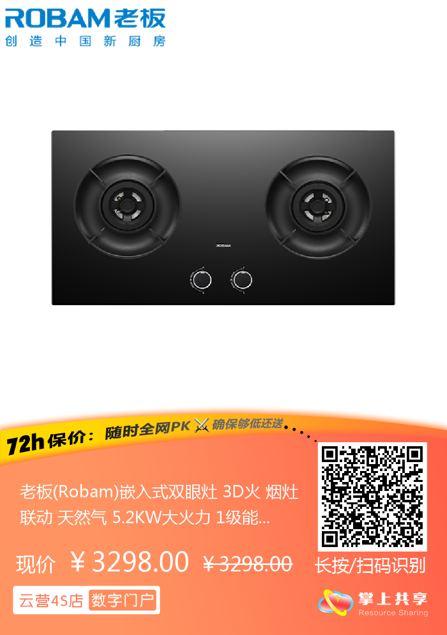 老板(Robam)嵌入式双眼灶 3D火 烟灶联动 天然气 5.2KW大火力 1级能效 9B3-B1