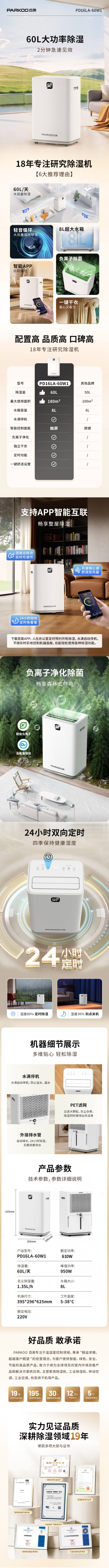 百奥家用除湿机 除湿量60升/日 8升储水箱+直排 PD16LA-60W1