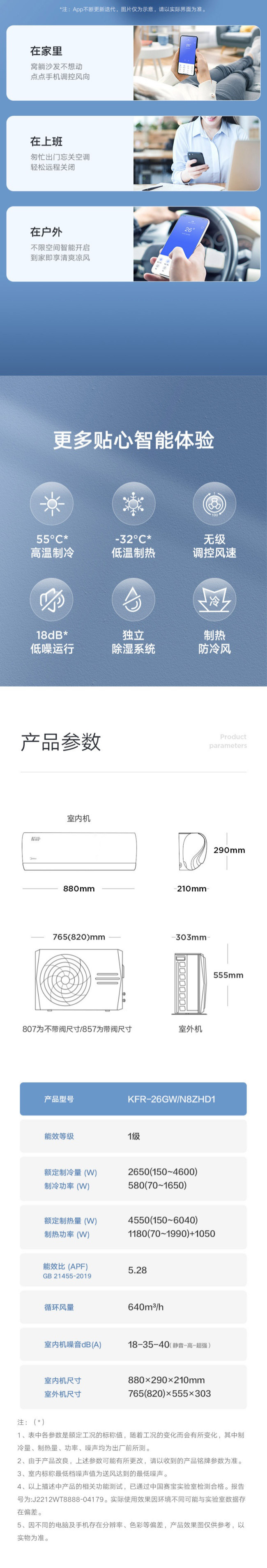 美的空调 大1匹 酷静 新1级能效 变频冷暖 KFR-26GW/N8ZHD1