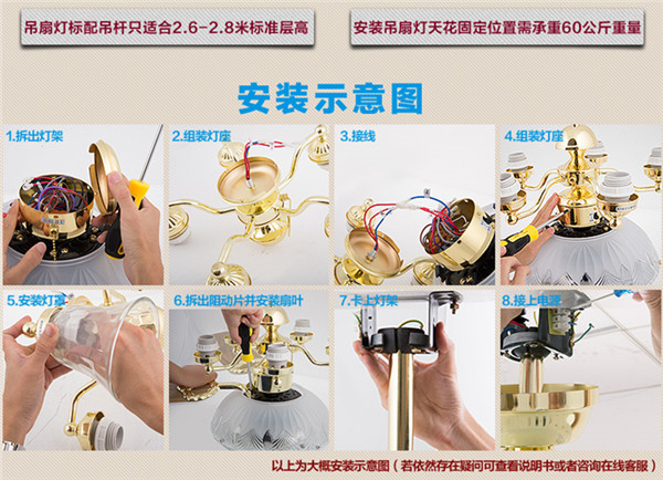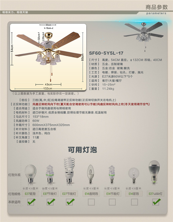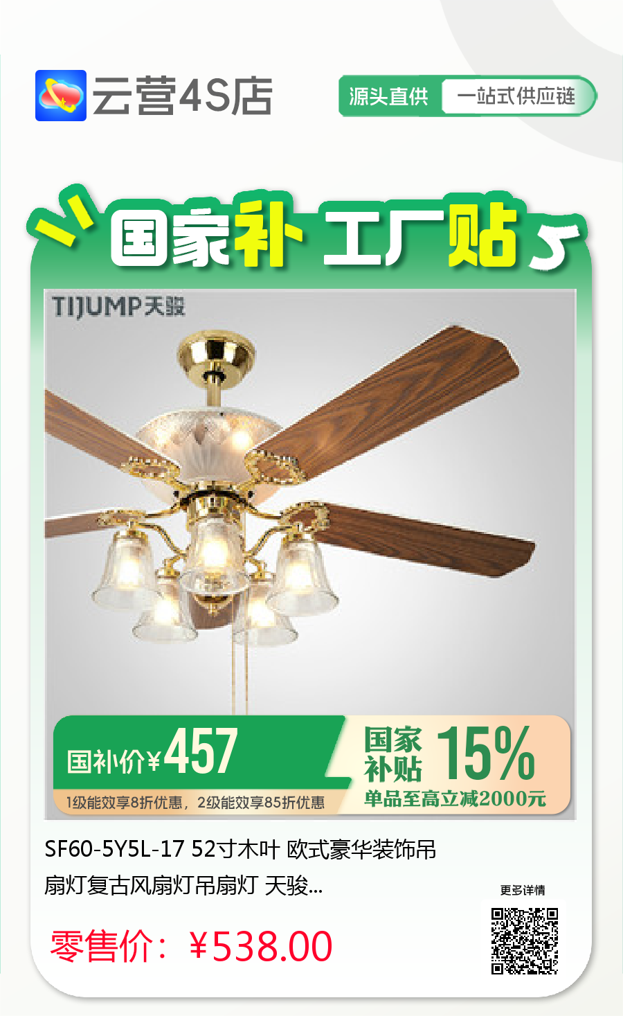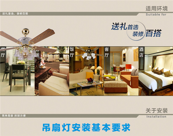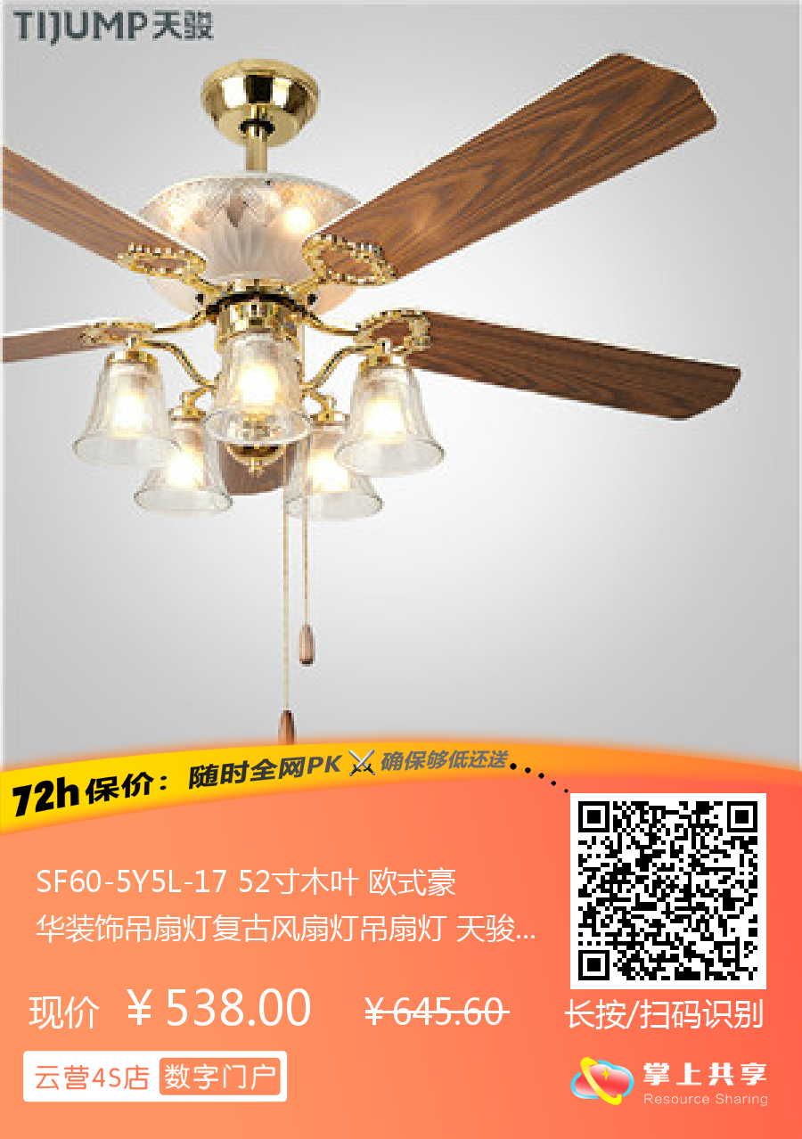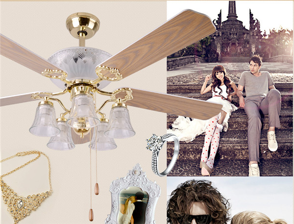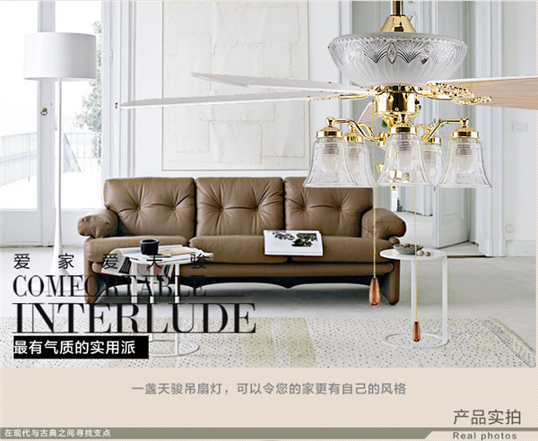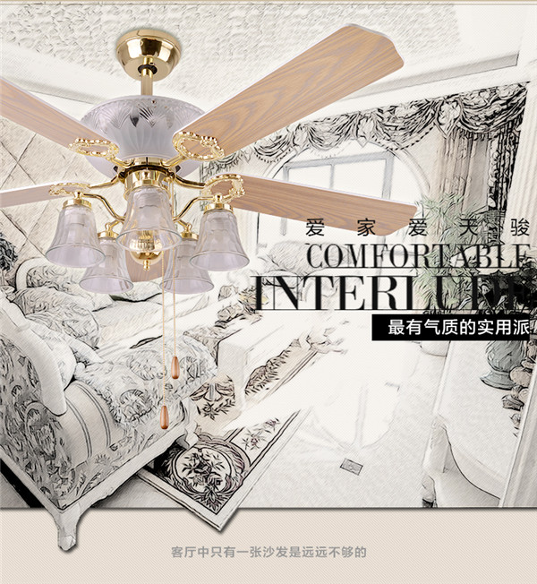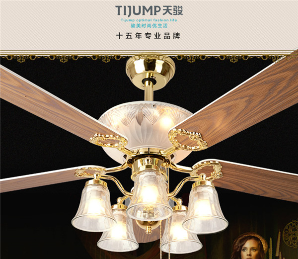 SF60-5Y5L-17 52寸木叶 欧式豪华装饰吊扇灯复古风扇灯吊扇灯 天骏