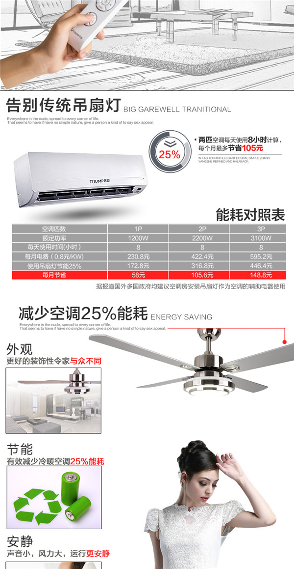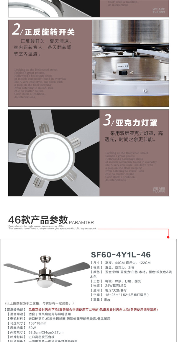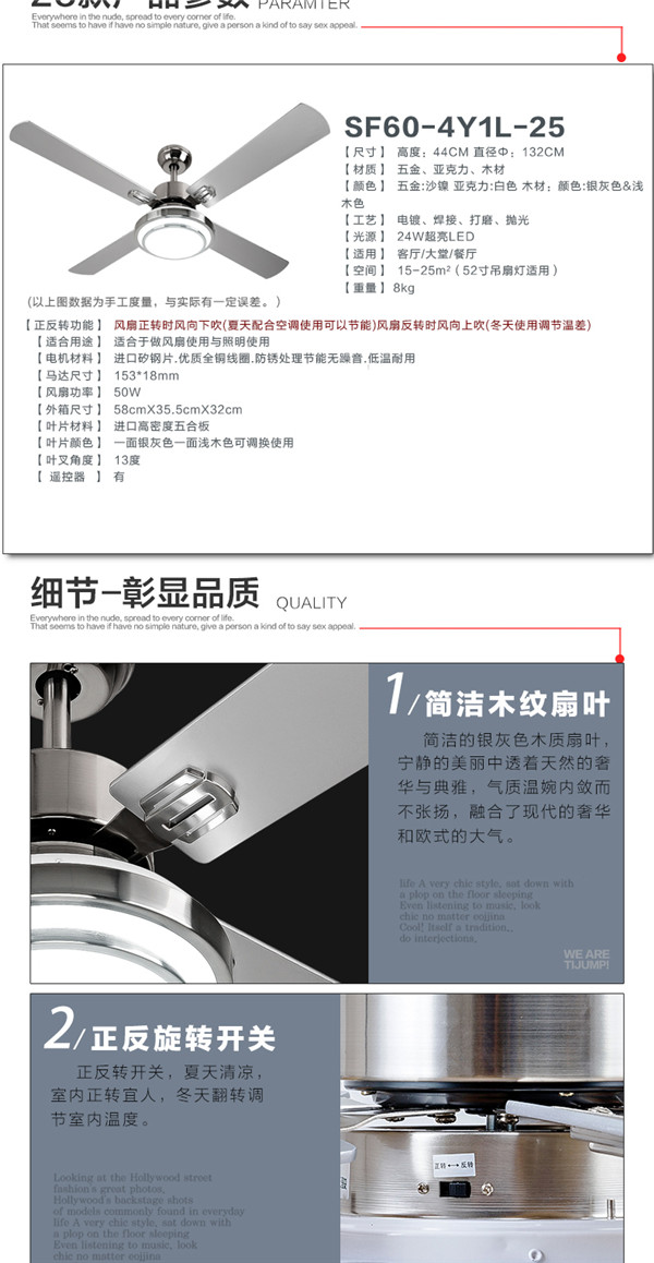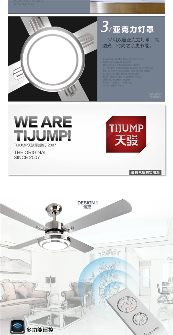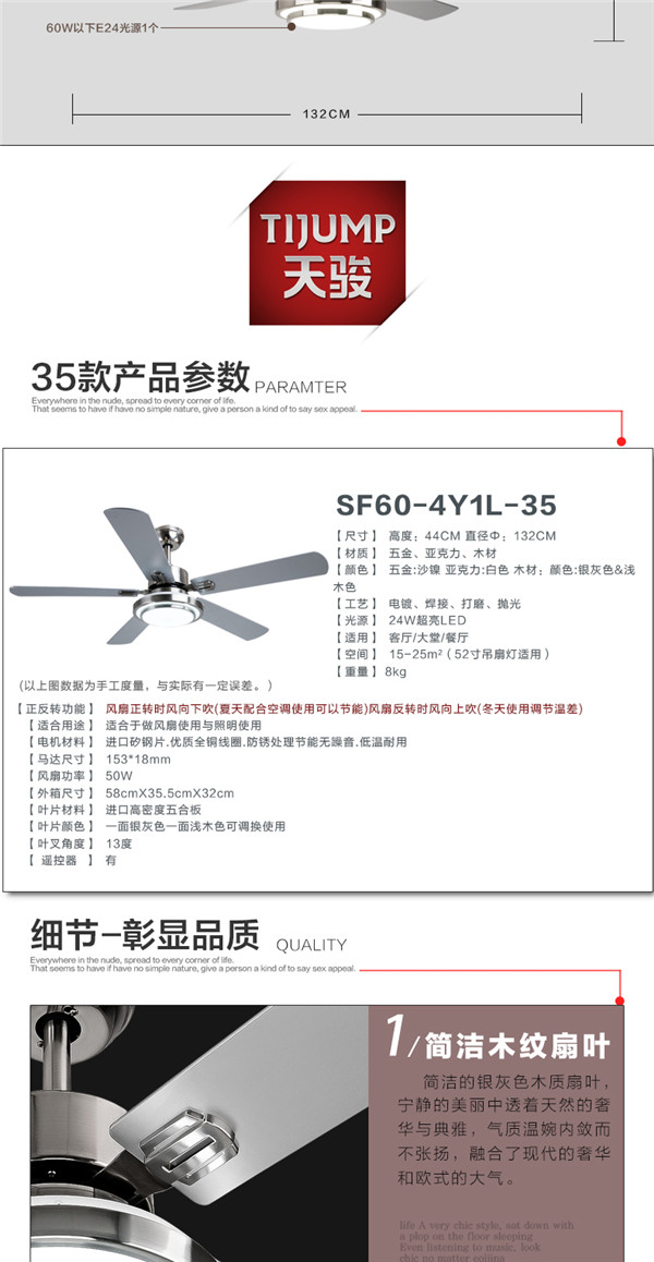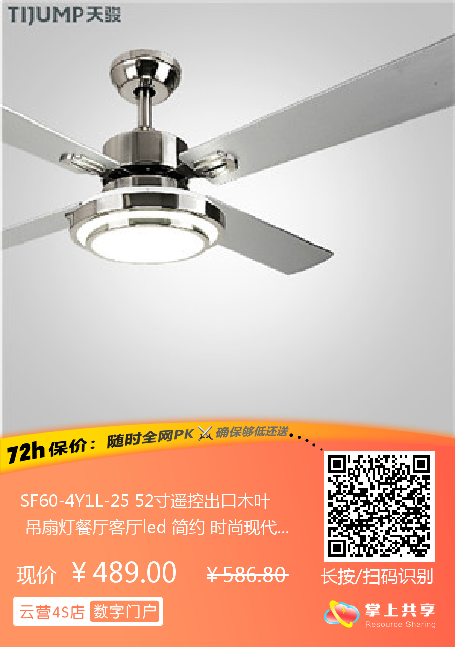 SF60-4Y1L-25 52寸遥控出口木叶 吊扇灯餐厅客厅led 简约 时尚现代风扇灯 天骏