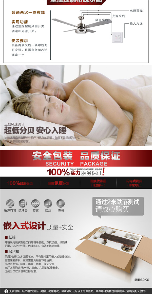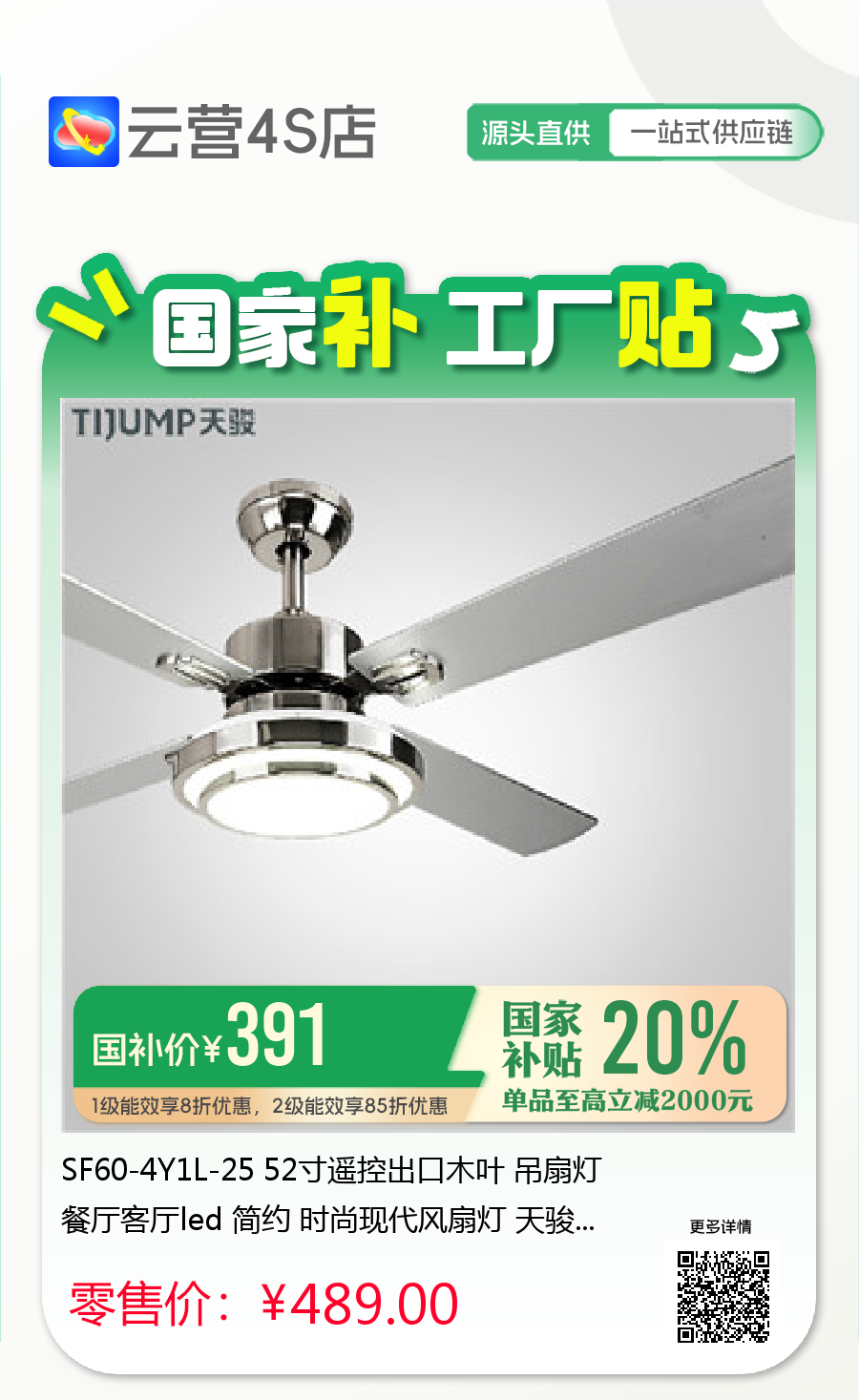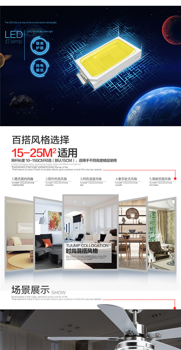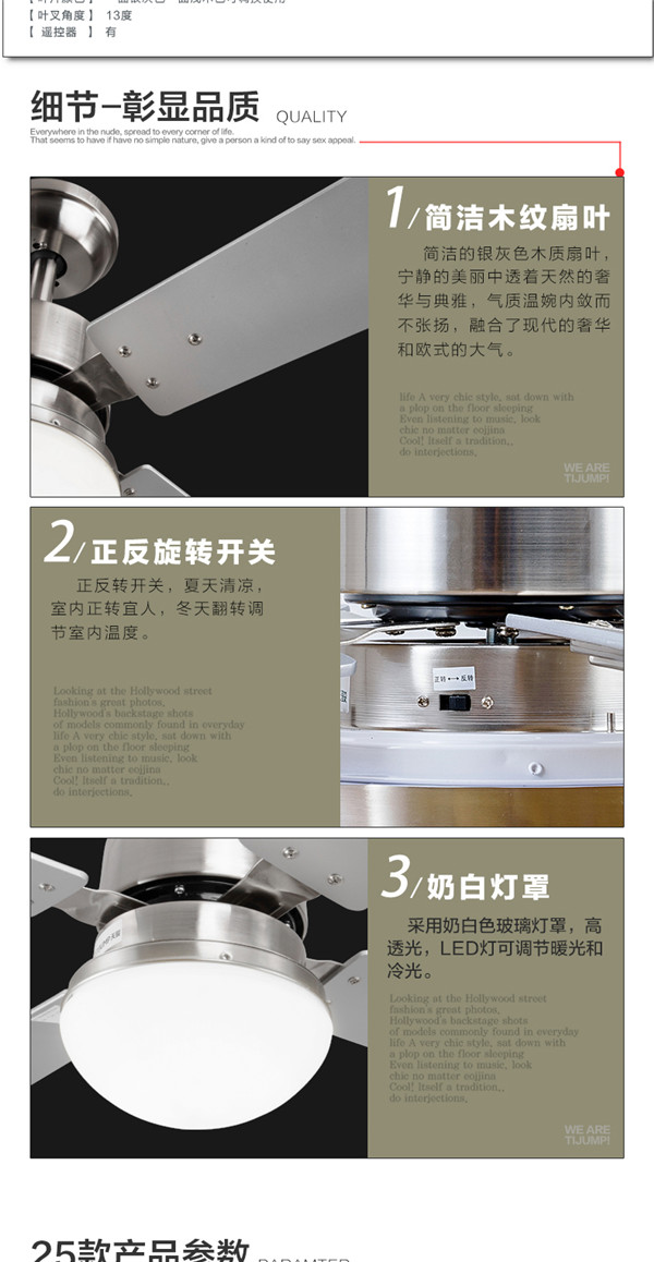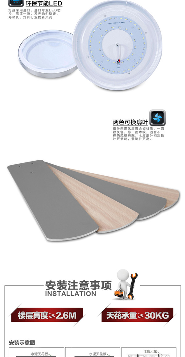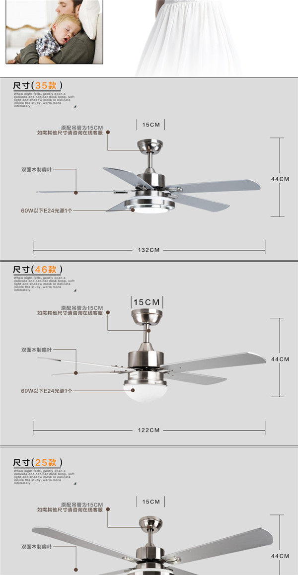 SF60-4Y1L-25 52寸遥控出口木叶 吊扇灯餐厅客厅led 简约 时尚现代风扇灯 天骏