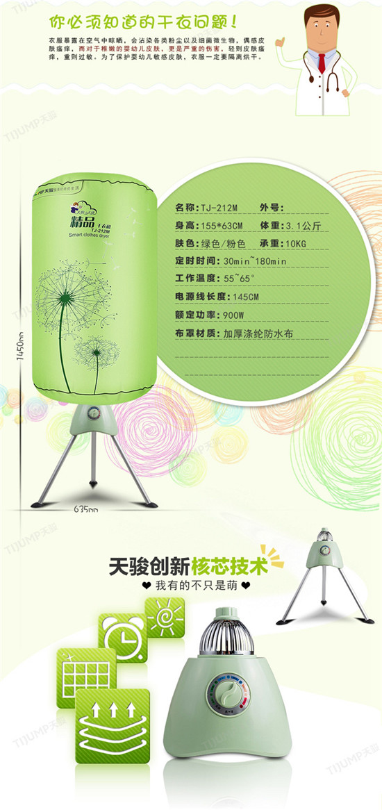 TJ-212M 双层干衣机 可折叠烘干机 家用衣服烘衣机干器 天骏