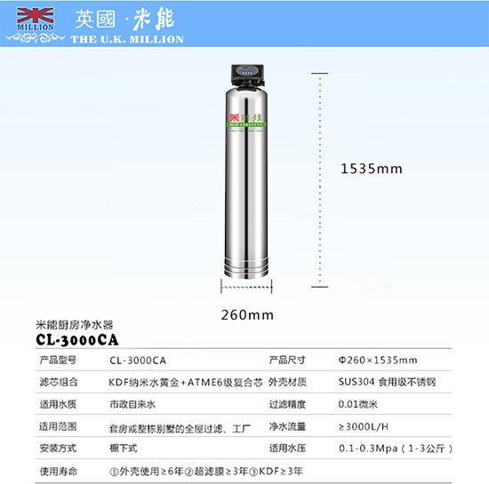 英国米能CL-3000超滤中央净水器 自动型