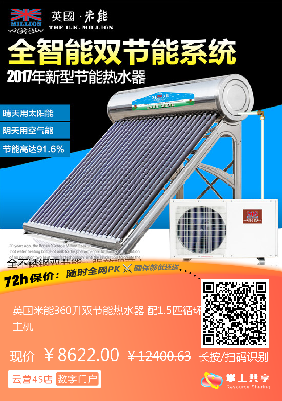 英国米能360升双节能热水器 配1.5匹循环主机