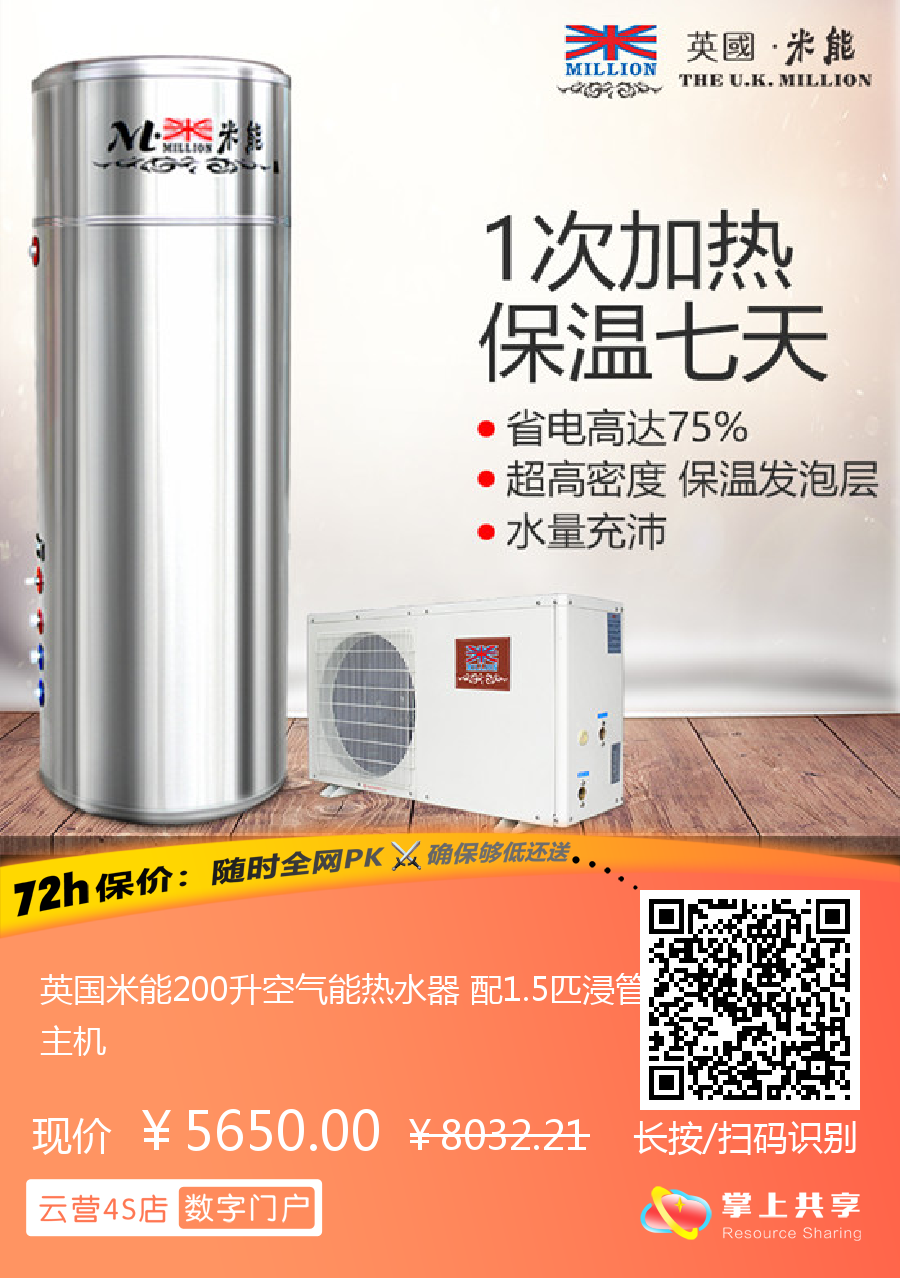 英国米能200升空气能热水器 配1.5匹浸管主机