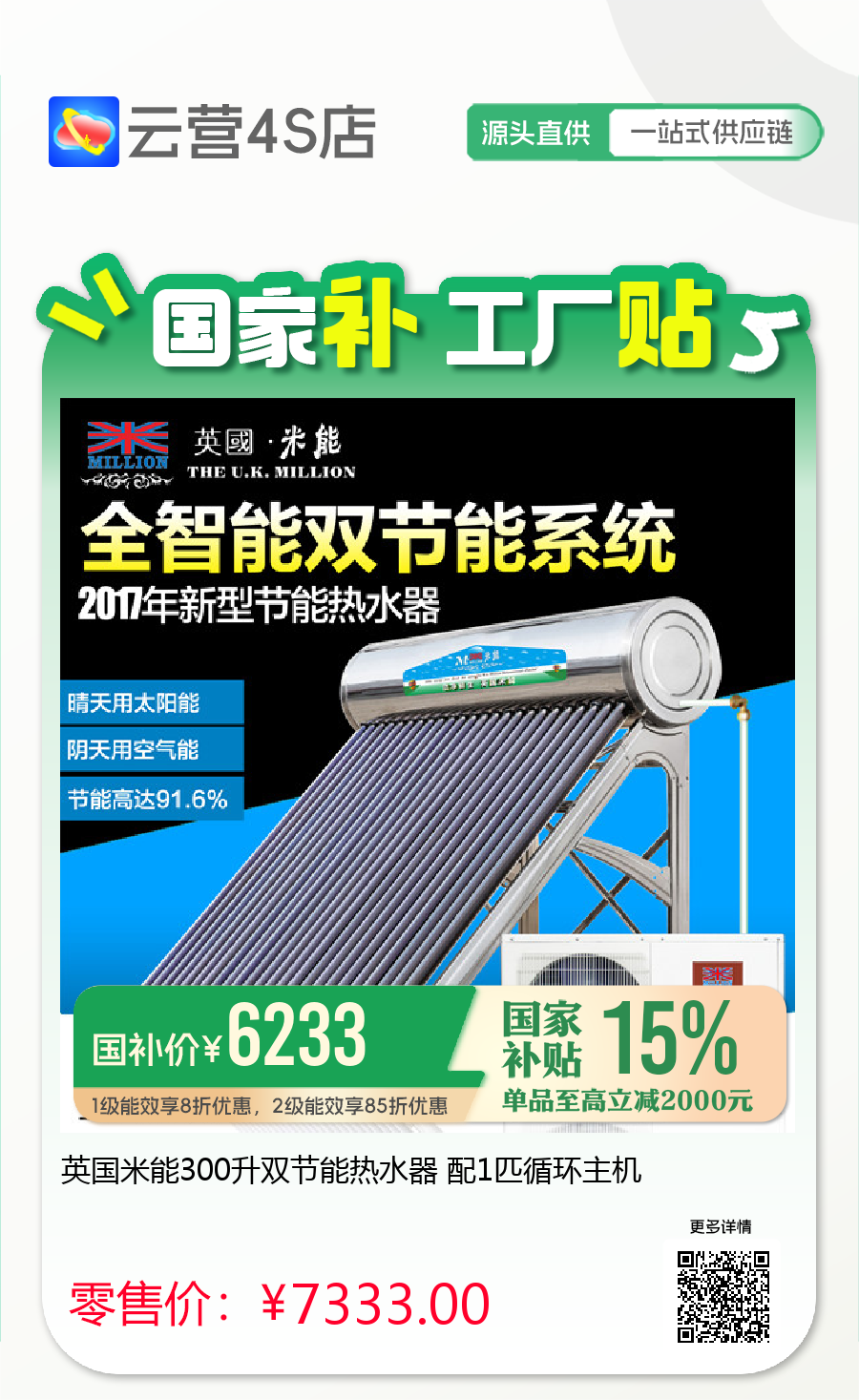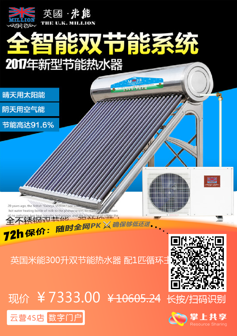 英国米能300升双节能热水器 配1匹循环主机