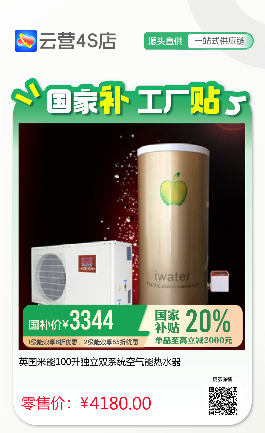 英国米能100升独立双系统空气能热水器