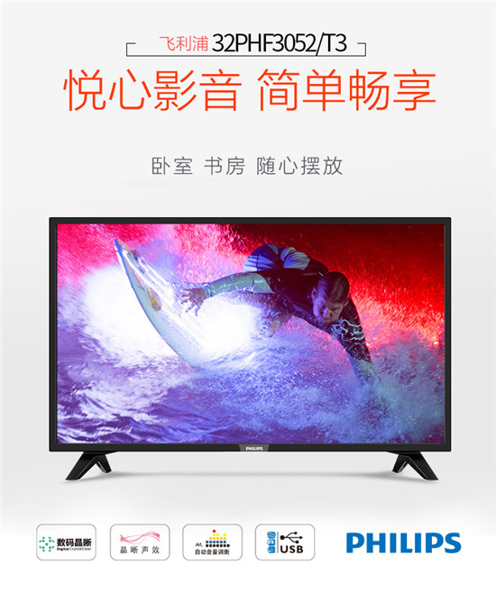 飞利浦 32英寸 新品高清LED液晶平板电视机 32PHF3052/T3