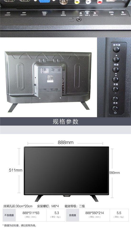 飞利浦 39英寸 逐点高清LED液晶平板电视机(黑色) 39PHF3251/T3