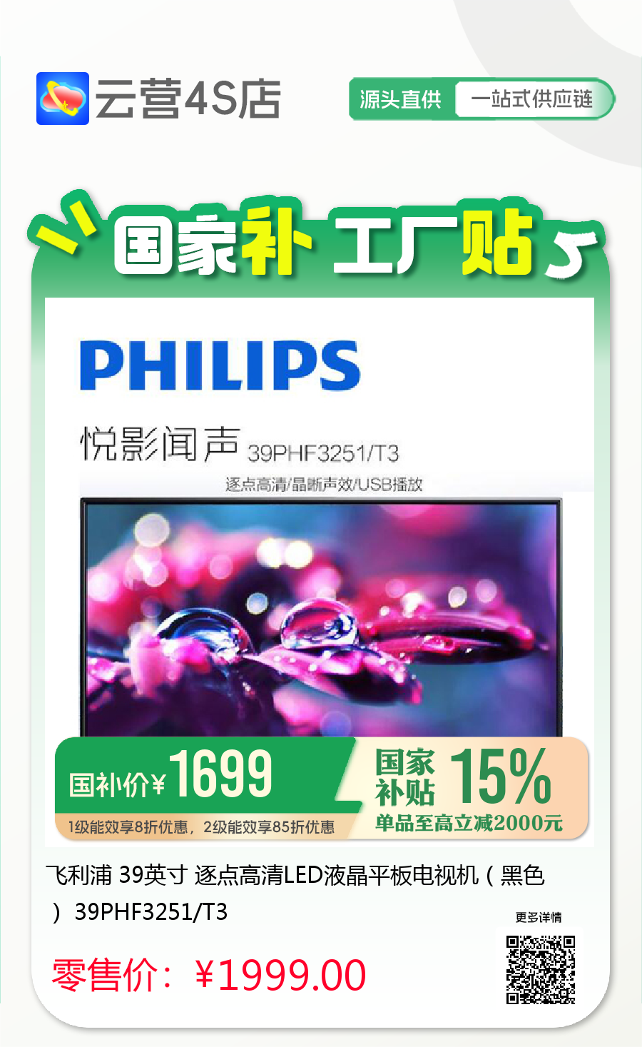 飞利浦电视~「云营4S店❃无界直营」
