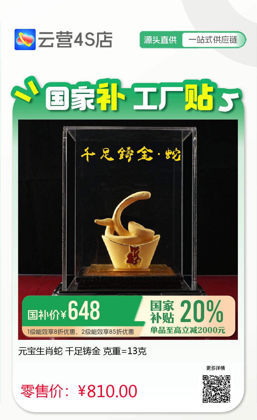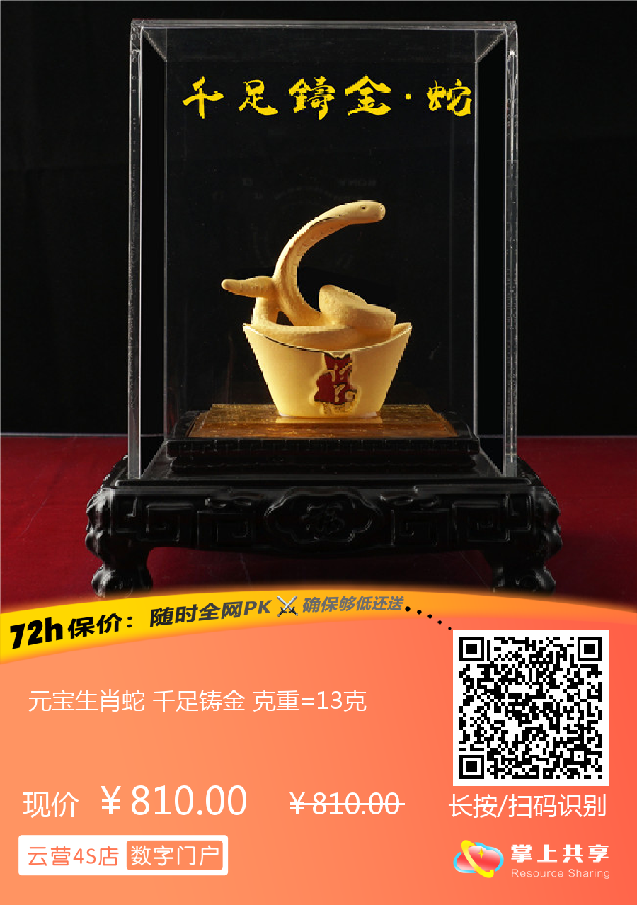 元宝生肖蛇 千足铸金 克重=13克