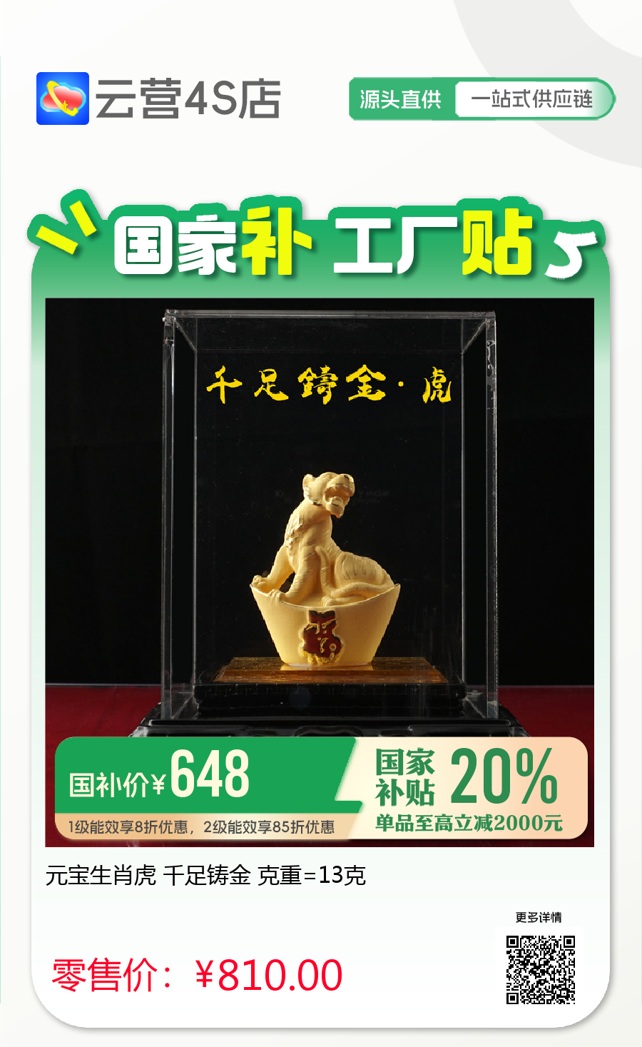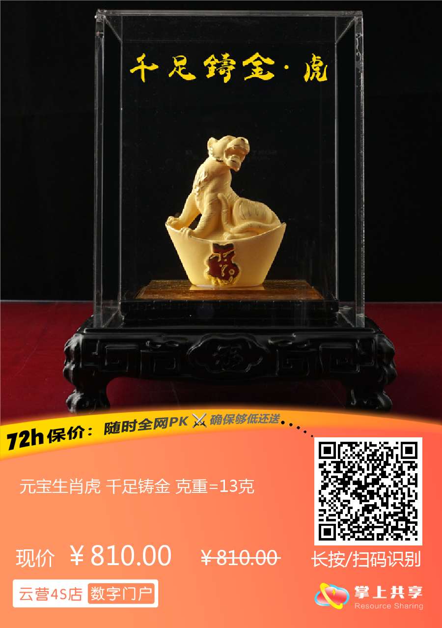 元宝生肖虎 千足铸金 克重=13克