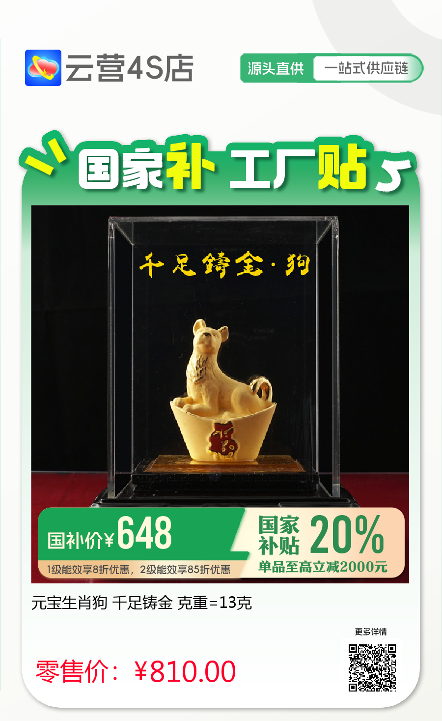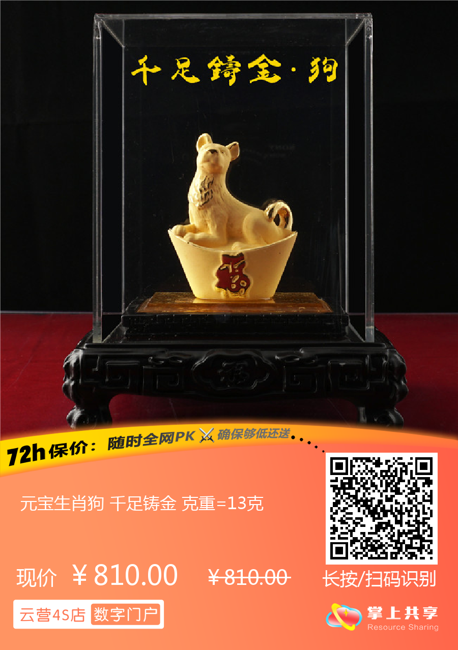 元宝生肖狗 千足铸金 克重=13克