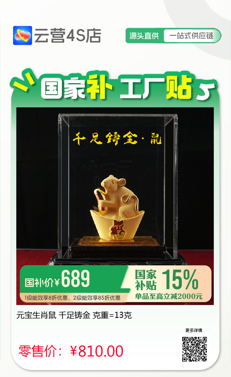 元宝生肖鼠 千足铸金 克重=13克