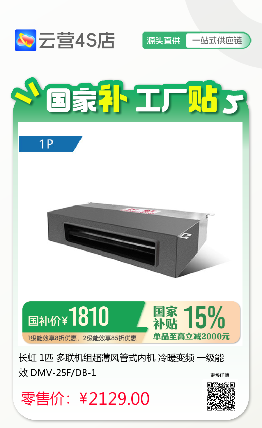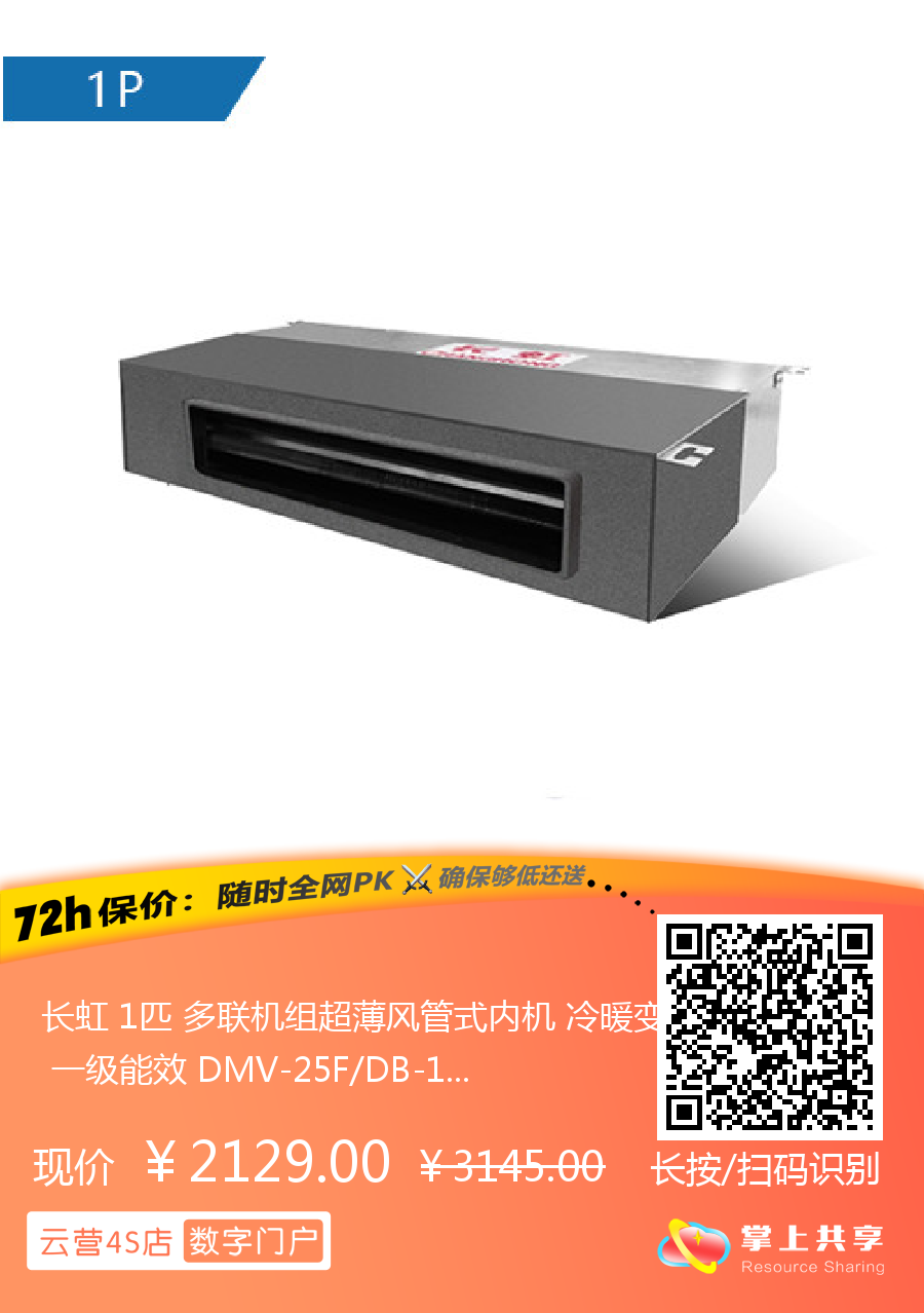 长虹 1匹 多联机组超薄风管式内机 冷暖变频 一级能效 DMV-25F/DB-1