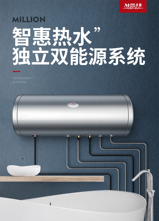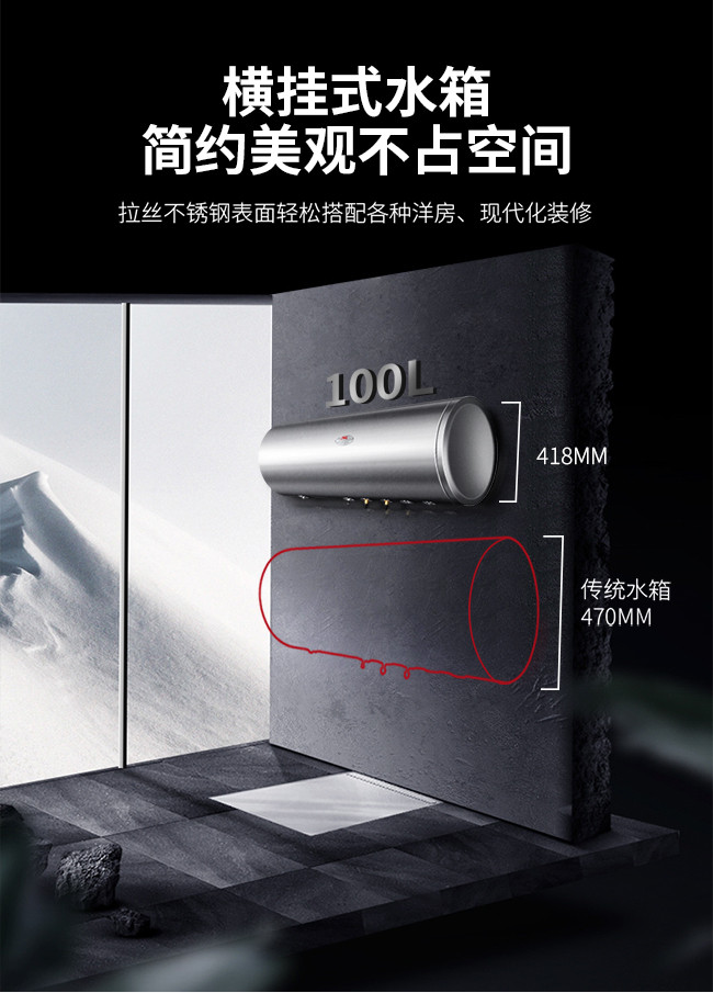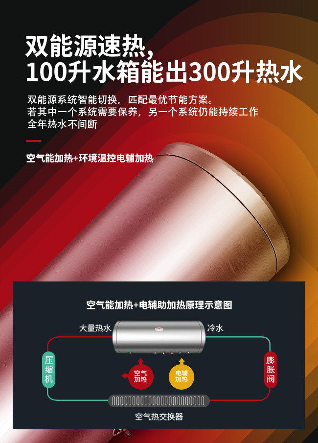 纤巧40cm直径,横挂式独立双动力源,100升容量供出300升热水,寸金尺土商品房中央热水不二之选!