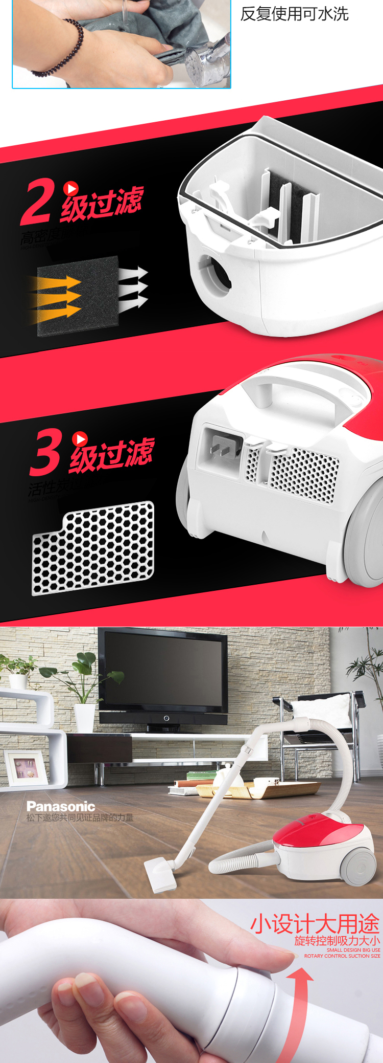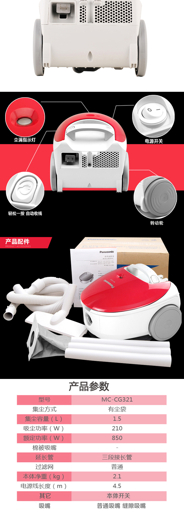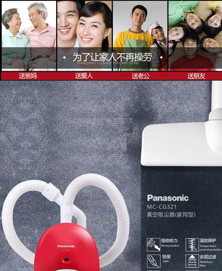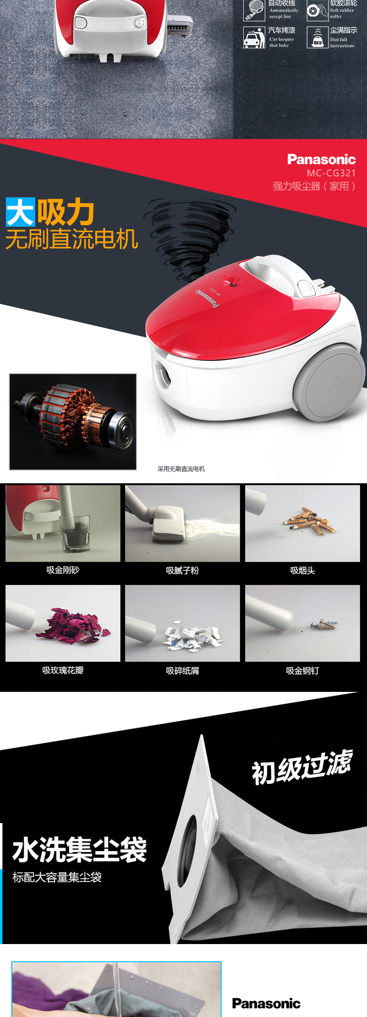 MC-CG321 吸尘器 家用强力卧式吸尘器 大功率地毯式 低音省电小型吸尘机 松下(Panasonic)