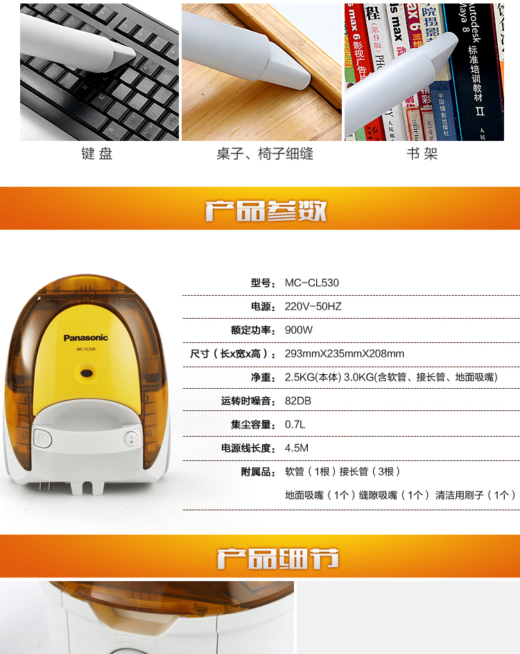 MC-CL530 吸尘器 家用静音无耗材 吸尘器集尘盒 可水洗 松下(Panasonic)