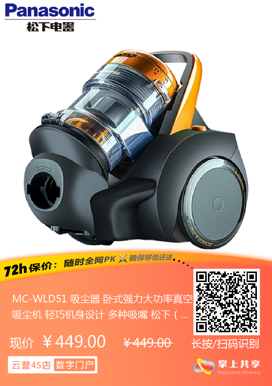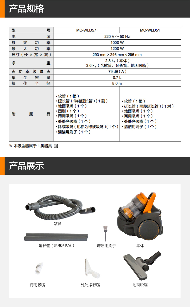 MC-WLD51 吸尘器 卧式强力大功率真空吸尘机 轻巧机身设计 多种吸嘴 松下(Panasonic)