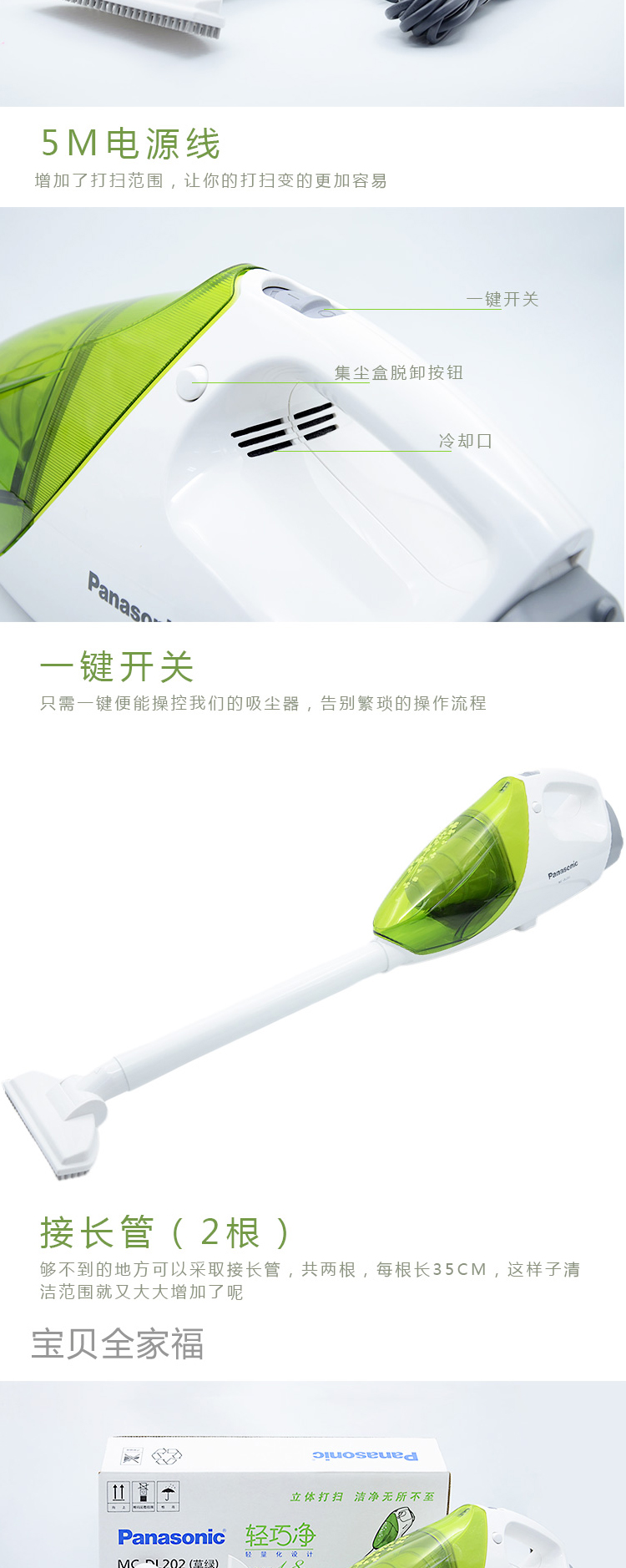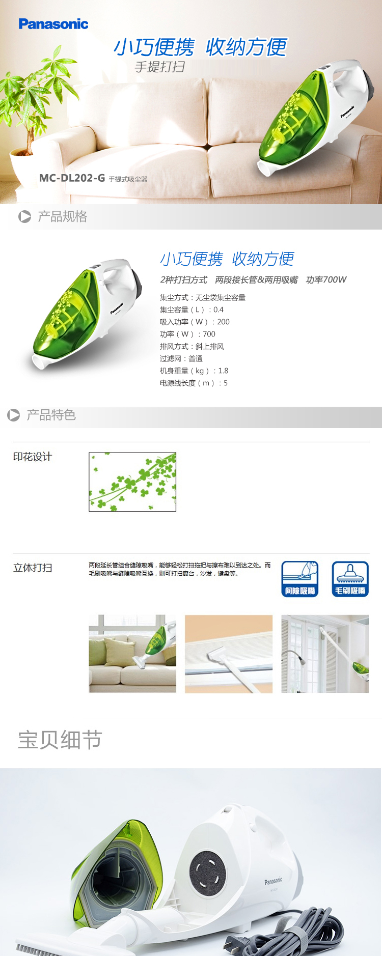 MC-DL202 手持吸尘器 家用手持迷你小型无尘袋吸尘机 松下(Panasonic)