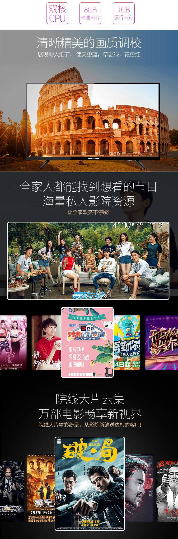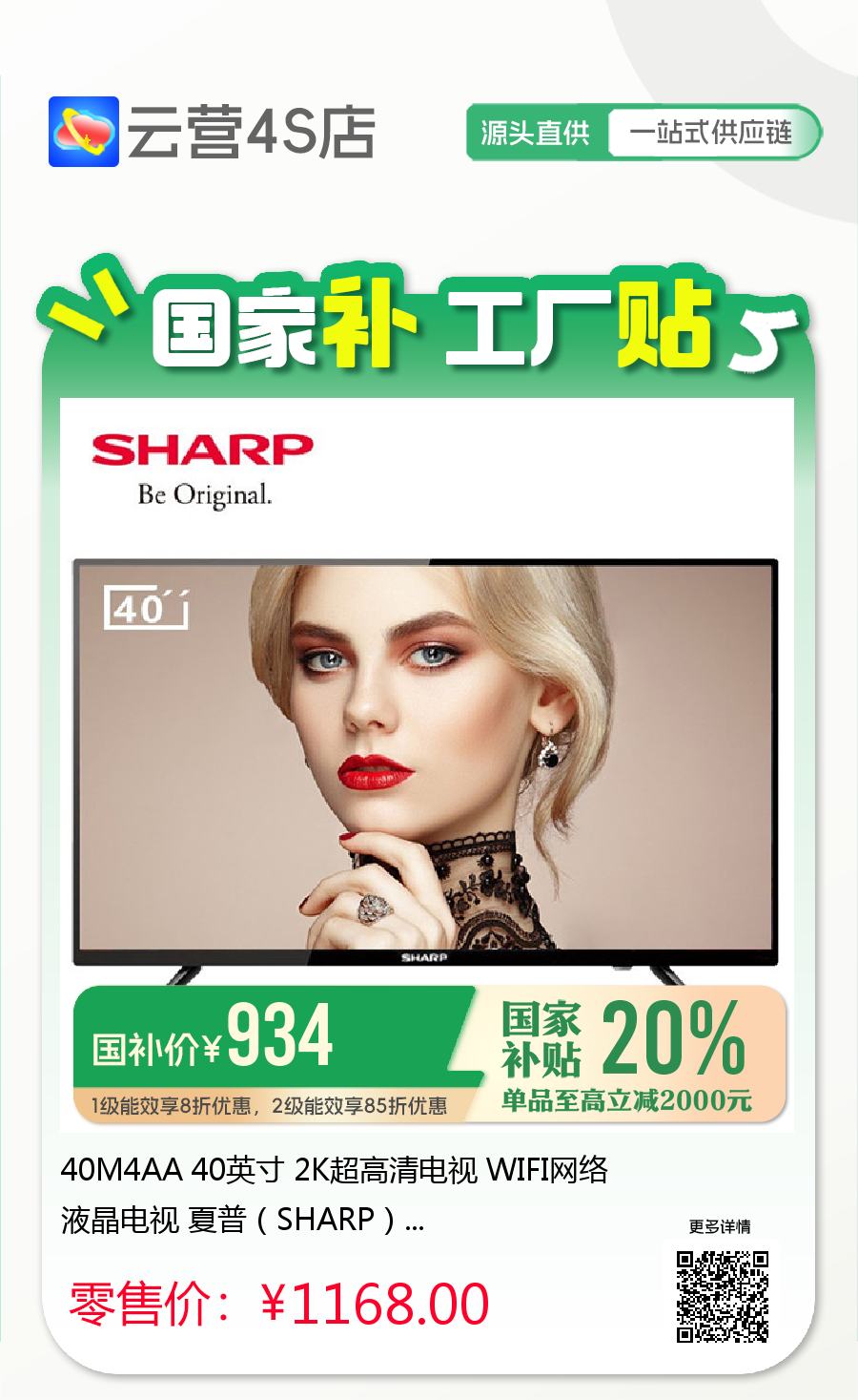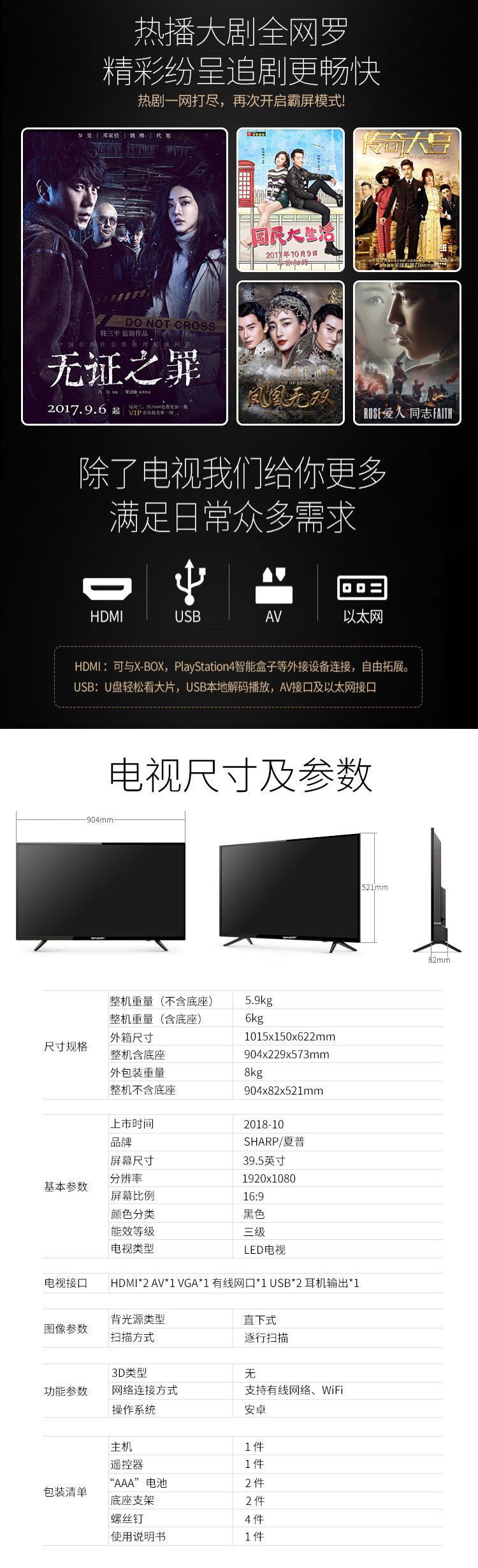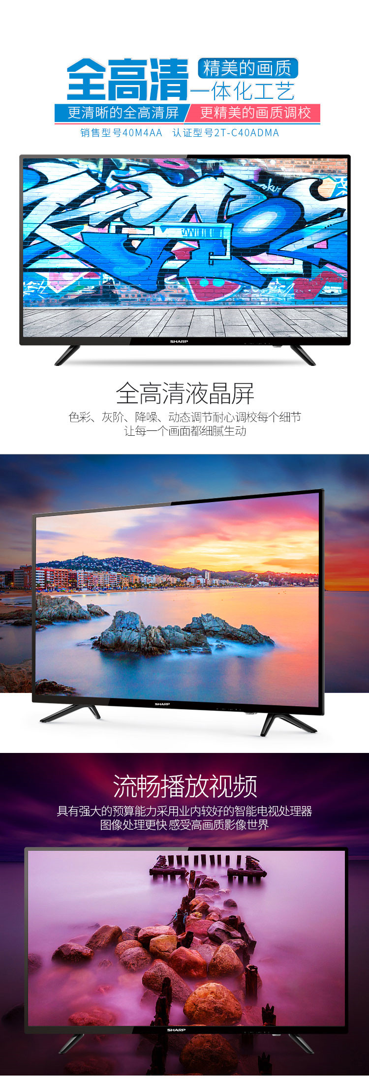 40M4AA 40英寸 2K超高清电视 WIFI网络液晶电视 夏普(SHARP)