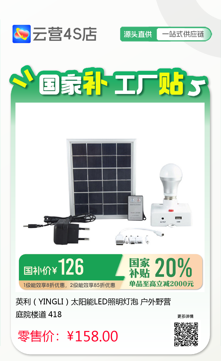 英利(YINGLI)太阳能LED照明灯泡 户外野营 庭院楼道 418