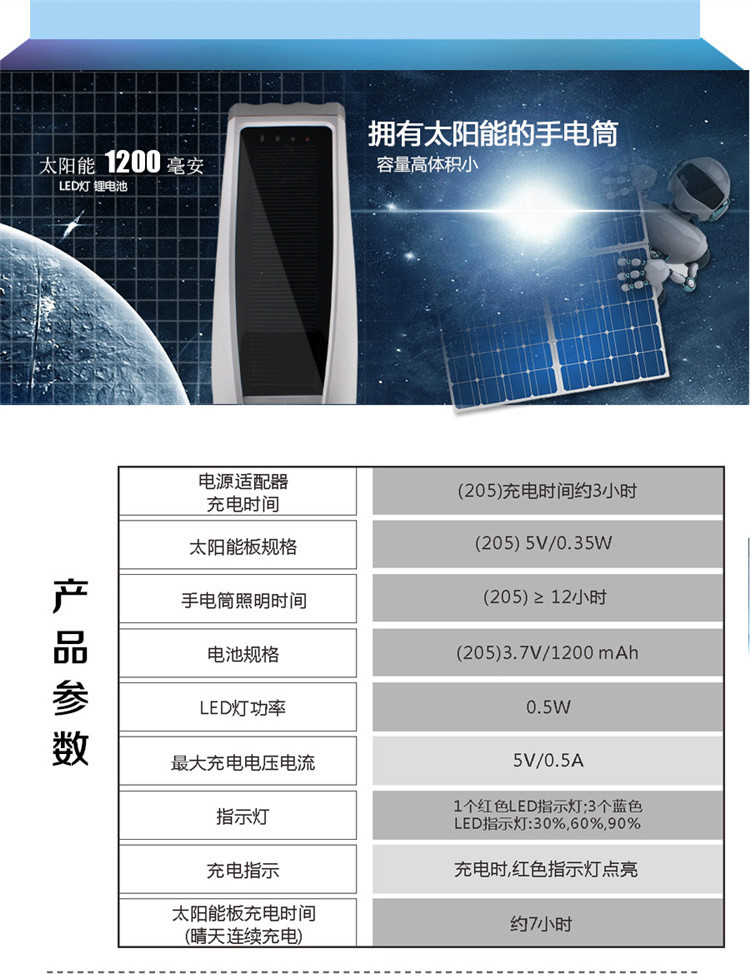 英利(YINGLI)太阳能LED手电筒 增强版 206