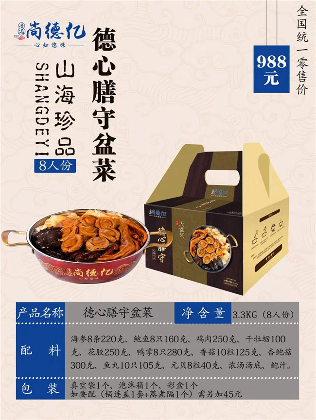 尚德亿 德心膳守盆菜 山海珍品 3.3KG(8人份)