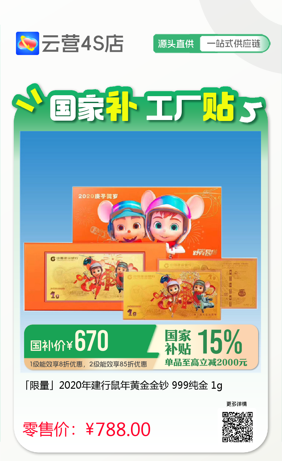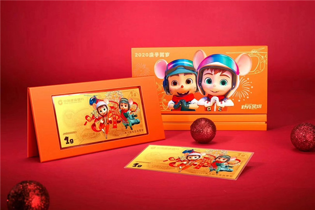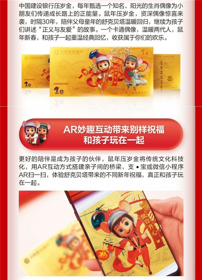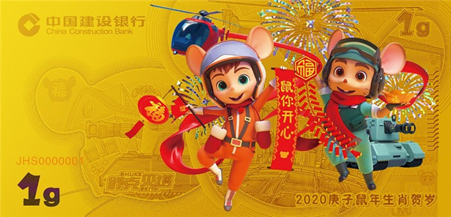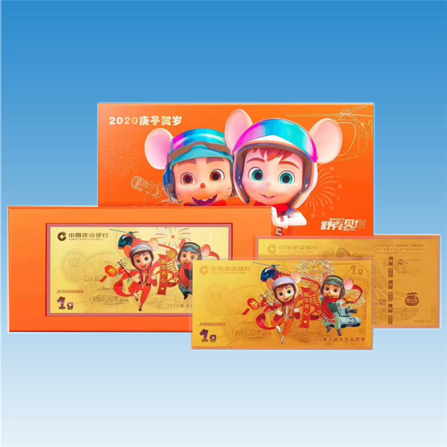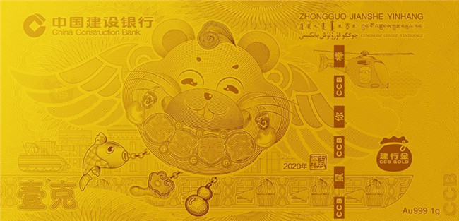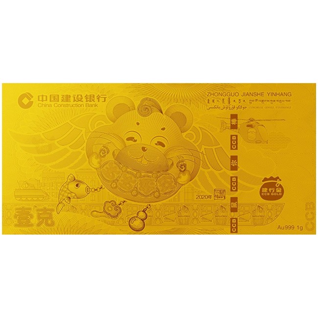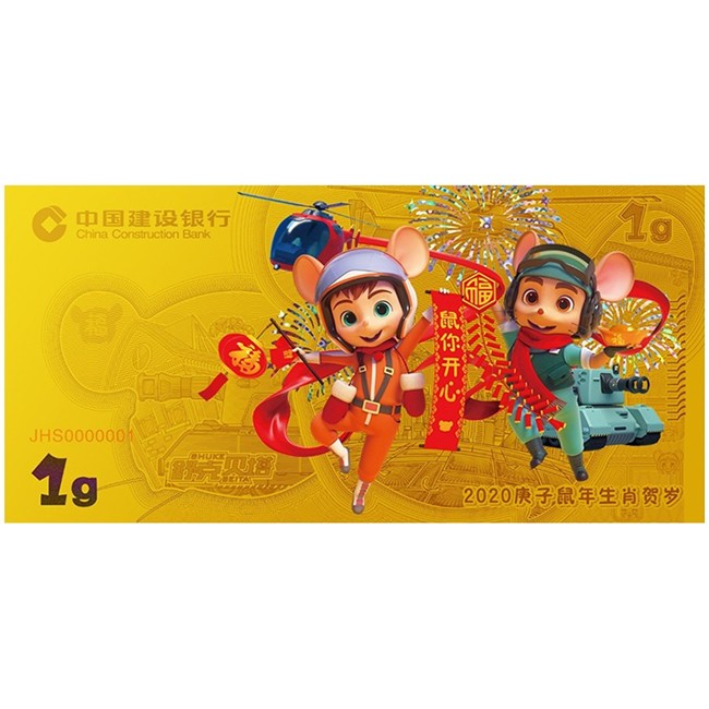 「限量」2020年建行鼠年黄金金钞 999纯金 1g