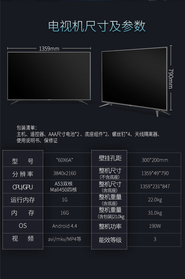 60X6A 60英寸 日本原装面板4K超清网络智能液晶平板电视 夏普(SHARP)