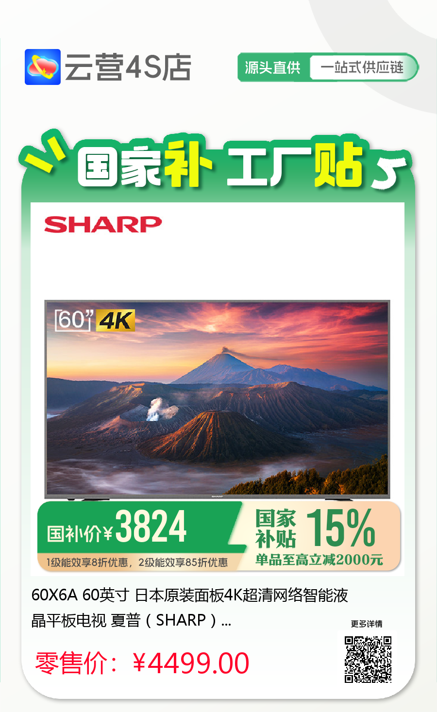 卖家: 夏普电视~「云营4S店❃无界直营」地址:小榄镇新市路64号