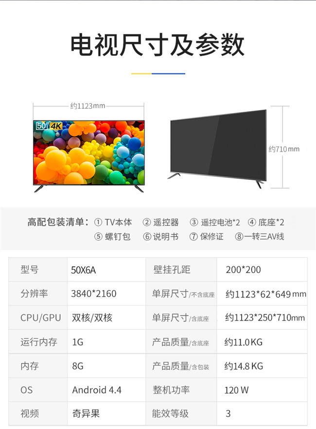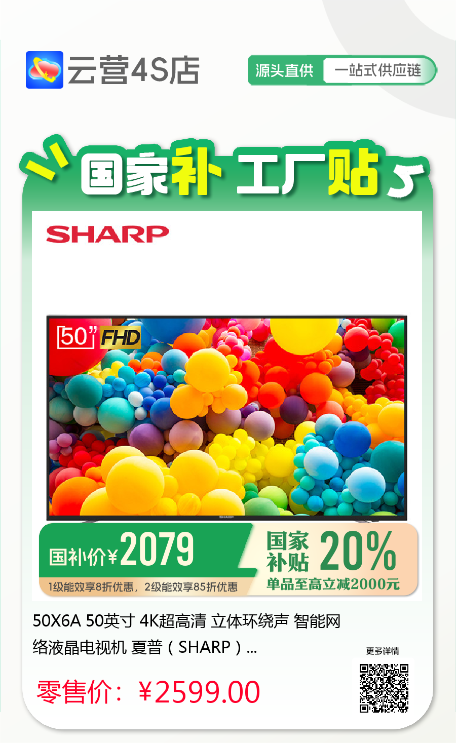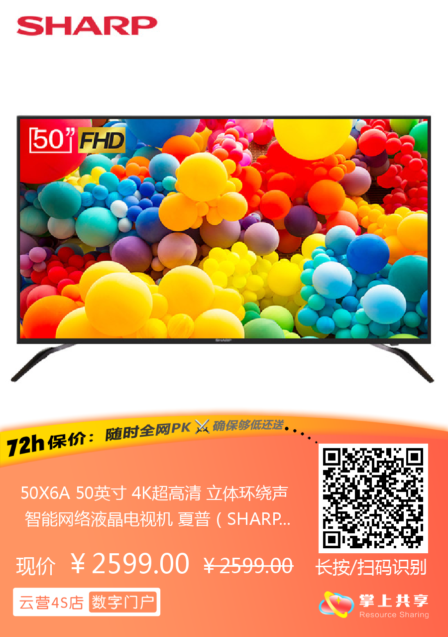 50X6A 50英寸 4K超高清 立体环绕声 智能网络液晶电视机 夏普(SHARP)