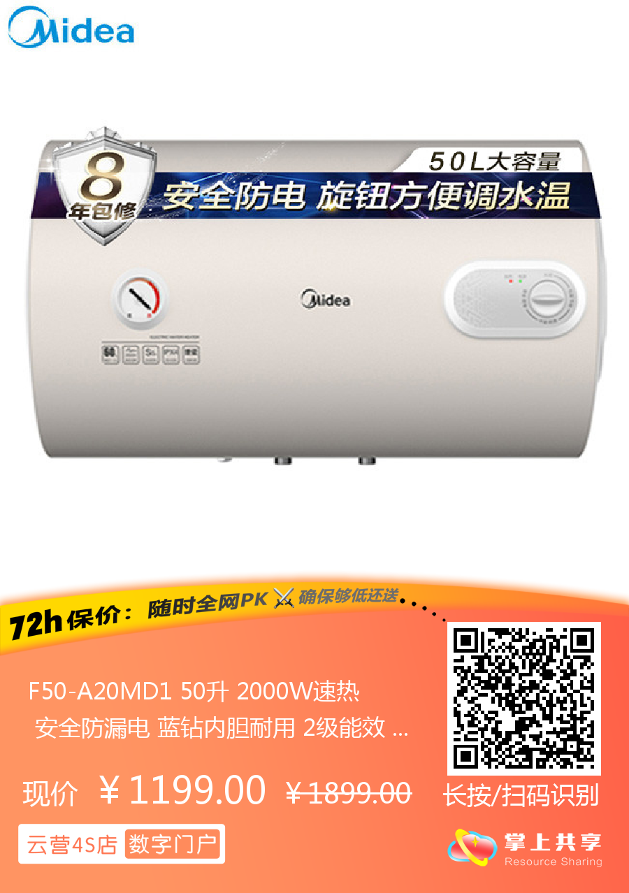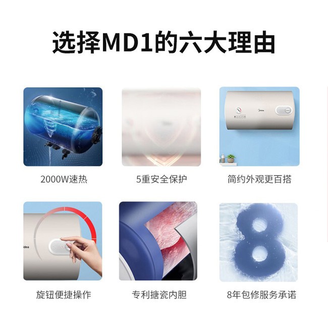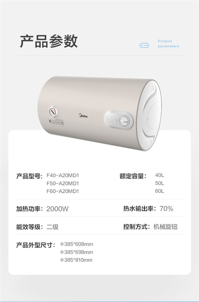 F50-A20MD1 50升 2000W速热 安全防漏电 蓝钻内胆耐用 2级能效 米黄色